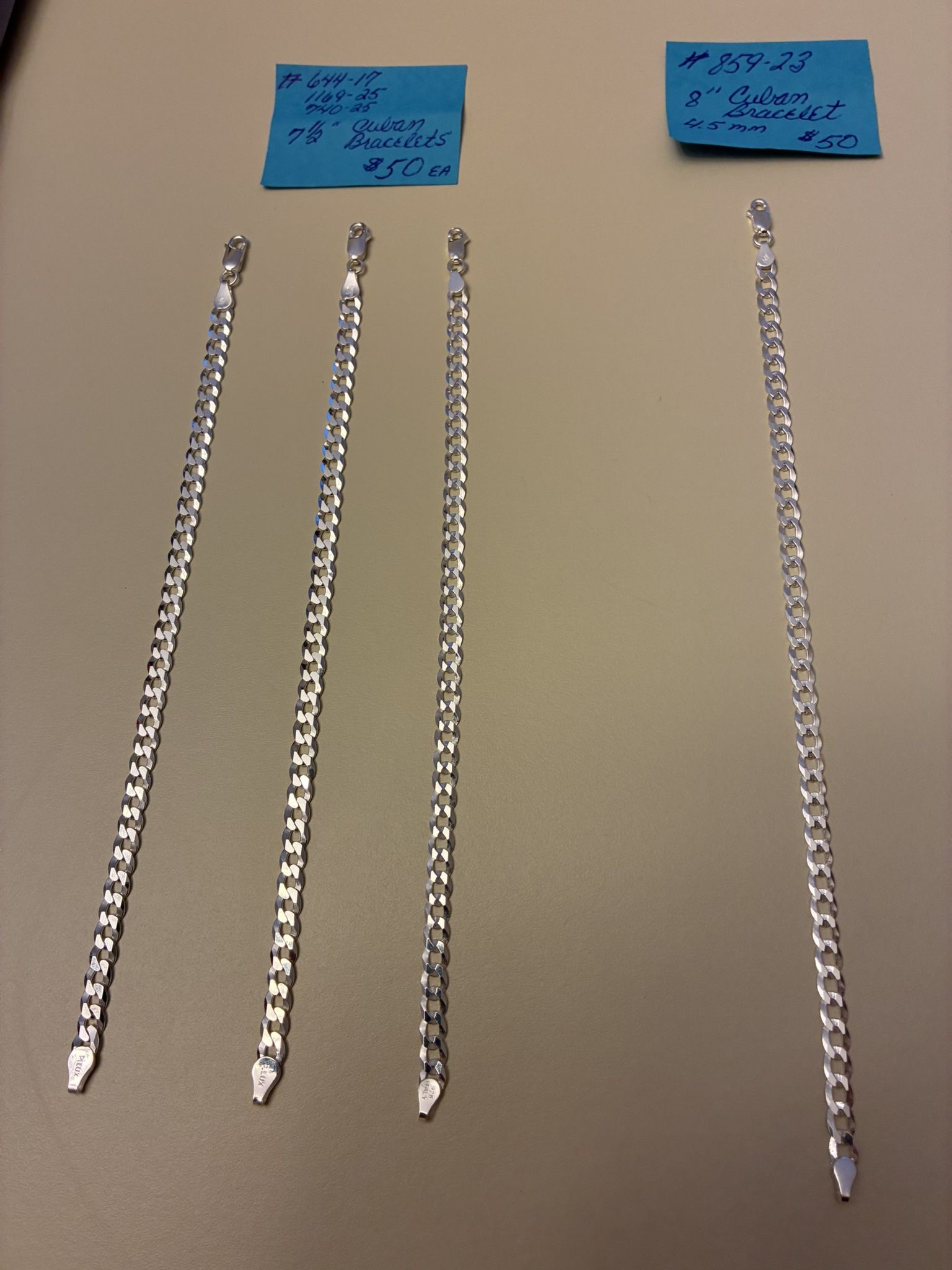 Brand new, never worn Cuban link. Each bracelet is almost 5mm wide. Great price on the perfect gift for your special someone. If you have any questions, please feel free to contact me. Crossroads are W Lawrence and N Washtenaw Ave in the Lincoln Square area (close to Harvestime Grocery Store) of Chicago. Thank you for looking and please check out my other listings. Many more items will be added soon-check out my Seller Details to see everything I have.