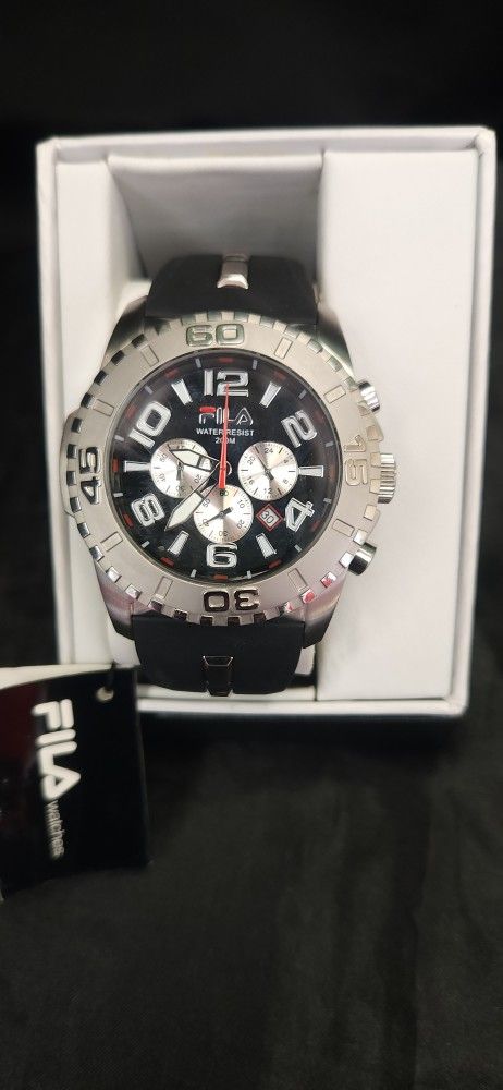 Fila FA0847 - 11 Abissi Men ' S Black Chronograph Date Silicone & Steel Watch NEW