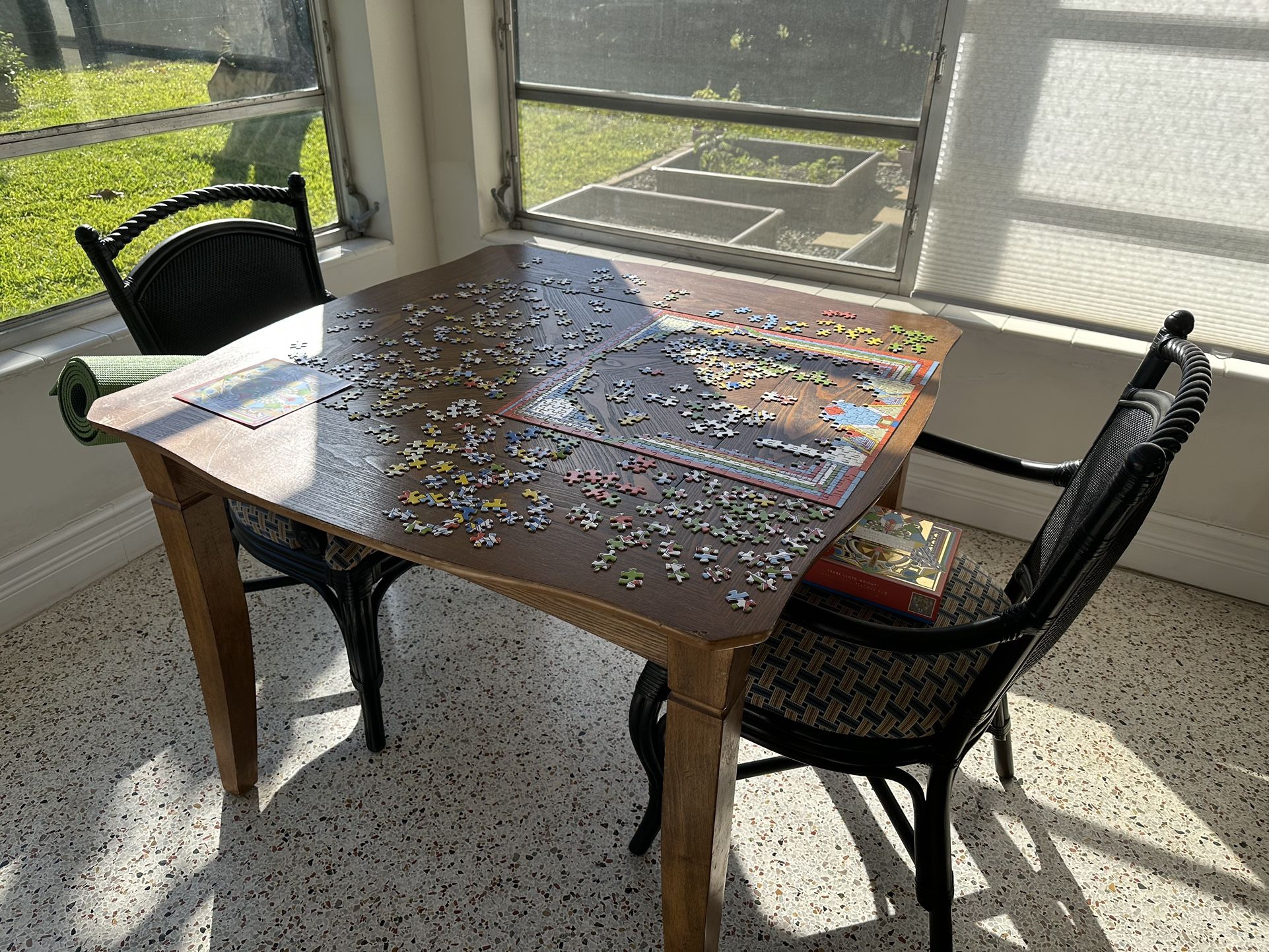 Tables opened to a backgammon board inset, too flips for chess, great for puzzles, games or doubles as dining. See my other listings for the backgammon and chess features.