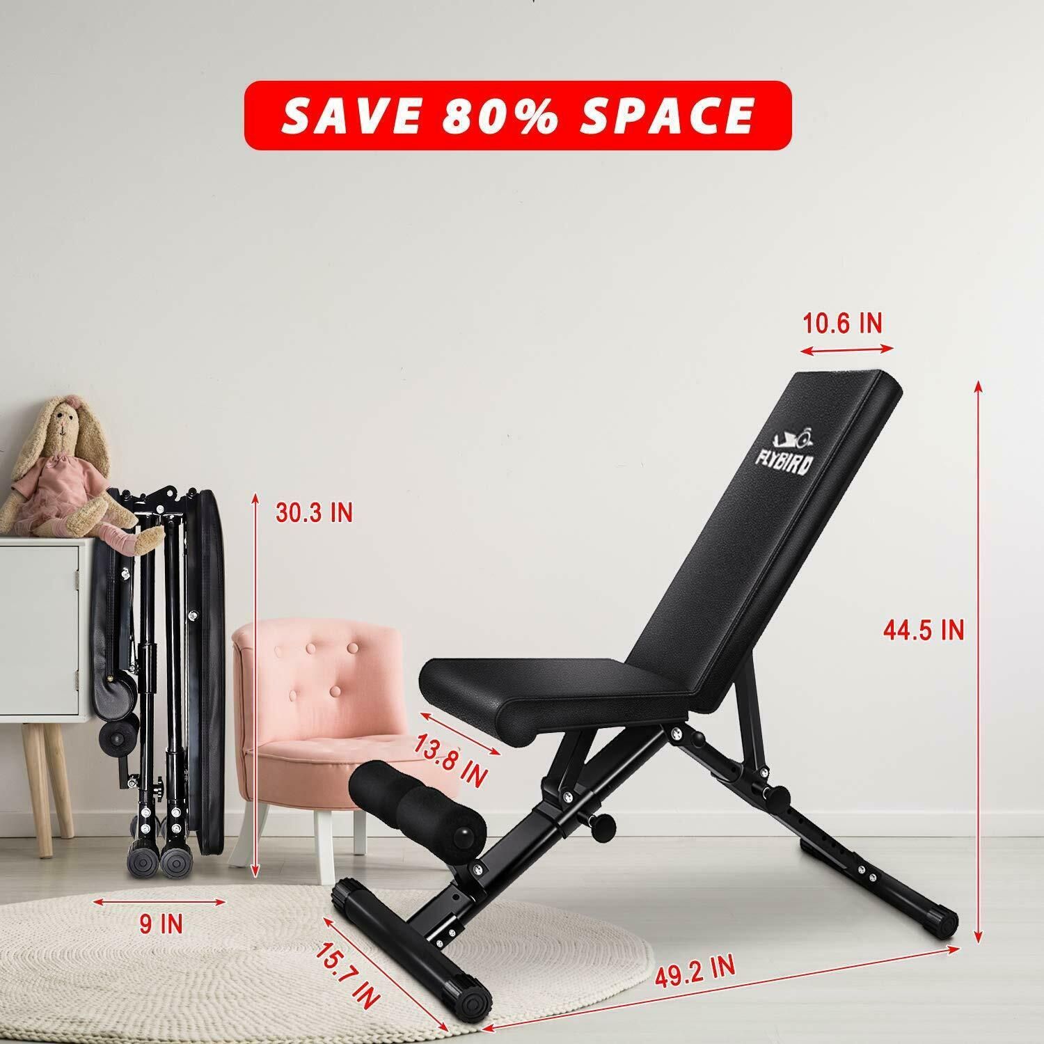 New Flybird Adjustable Folding Weight Bench Space Saver
