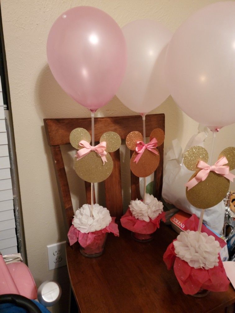 Tengo 6 centros de mesa de Minnie mouse Rosa y dorado I have 6 minnie mouse rose and gold center pieces Asking 20 for all 6