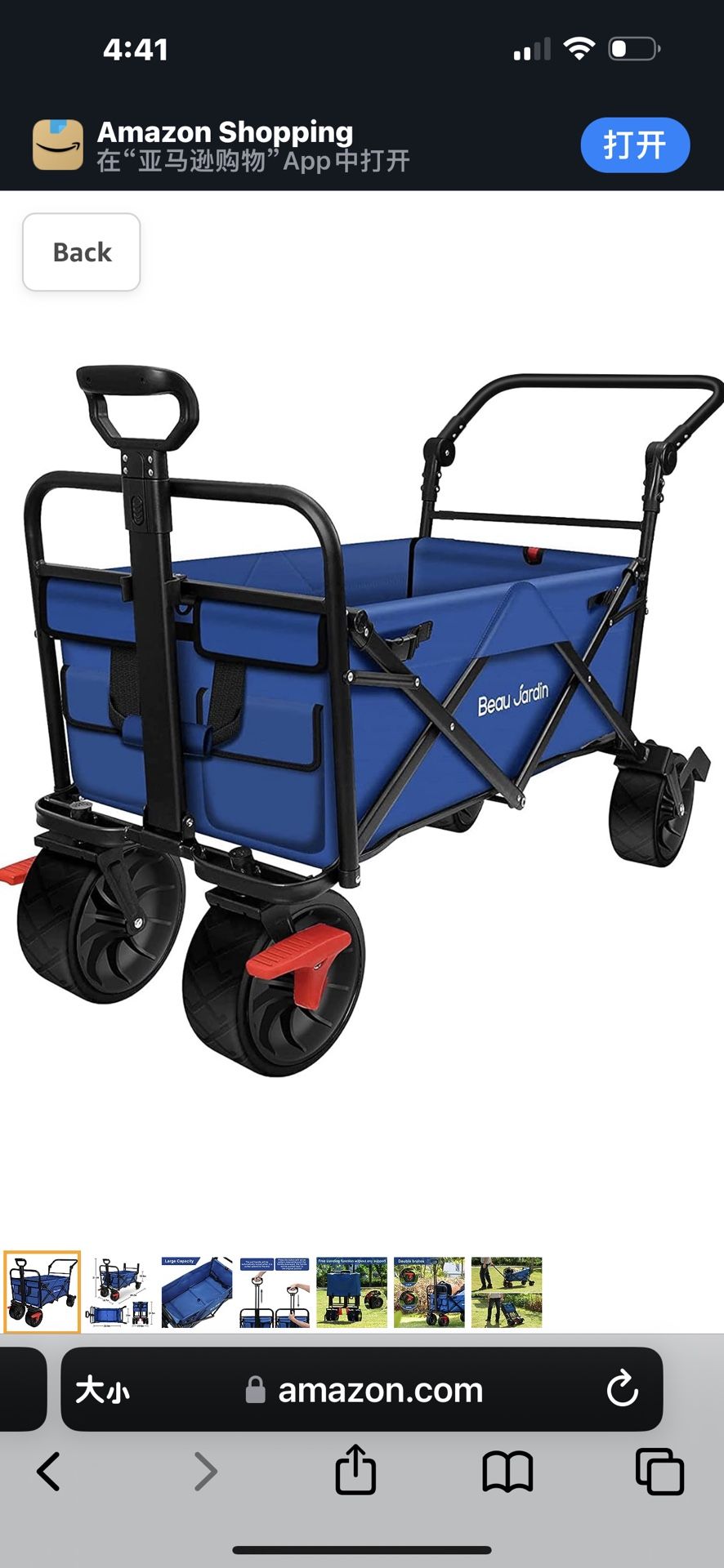 DetailsDetails Product Dimensions 49.2"D x 19.7"W x 31.5"H Brand BEAU JARDIN Material Polyester, Alloy Steel Color Blue Special Feature Easy Assembly About this item LARGE CAPACITY: Large load Folding beach wagon cart outside dimensions approx 49.2"Lx19.7"Wx31.5"H. The collapsible utility Wagon cart inside size is 33.5"Lx20"Wx10.6"H. Ground to the top of the handle is 31.5". Two cups in the fabric cup holders are not included. WEIGHT CAPACITY: The wheel of the canvas beach wagon is 2.8" Wide and 7.9" in diameter, The utility Wagon collapsible heavy duty frame. The spacing of the wheels can be Adjusted randomly to suit different Road surfaces. The folding wagons cart fabric material 600D polyester, and it is removable for easy hand or hose washing, camping Wagon cart frame material steel, The outdoor utility Wagon cart sturdy Black Steel frame is more stable. 360 DEGREES WHEELS AND ADJUSTABLE HANDLE : The folding beach wagon come with heavy duty PU Foam wheels - rotates 360,the spacing of the wagon cart wheels can be adjusted randomly to suit different road surfaces.Telescoping handle provides an easy control on most terrains,camping wagon cart handle can be adjusted height and adapted to the different height person push the cart.