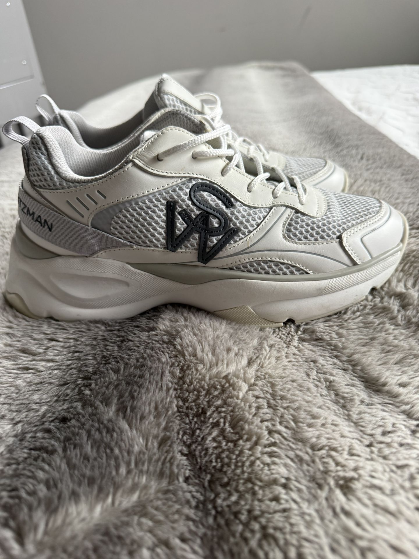 Comfy Stuart Weitzman sneakers. White and grey color with mesh details. Has chunky sole. Great for everyday wear. size 8 women’s