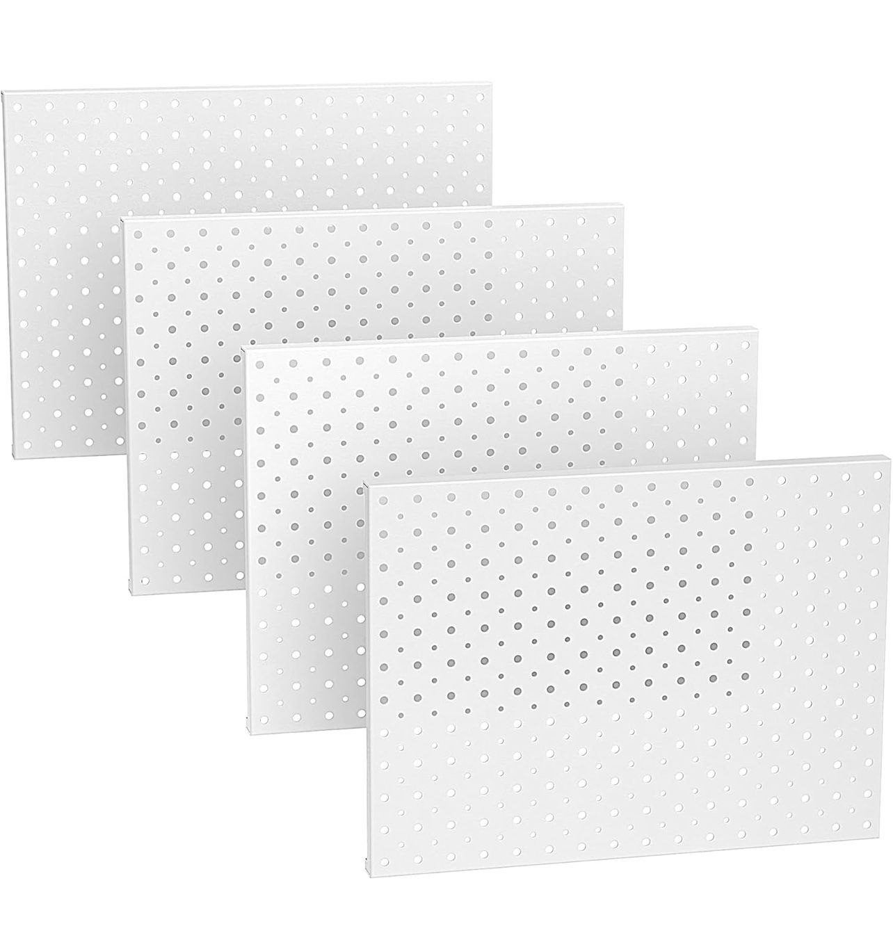 EVERHANGER Metal Pegboard Panels, Heavy Duty Pegboard Wall Organizer, Garage Wall Panels, Tool Storage Organization, 12"X16", 4pcs, White