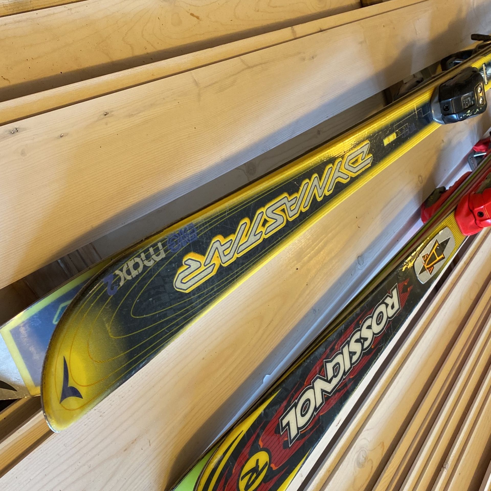 Selling some of my inventory of skis including these 170 cm big Macs two Dyna star skis Kevlar fiber as part of the construction with the wood core nice condition marker M 25V bindings?
