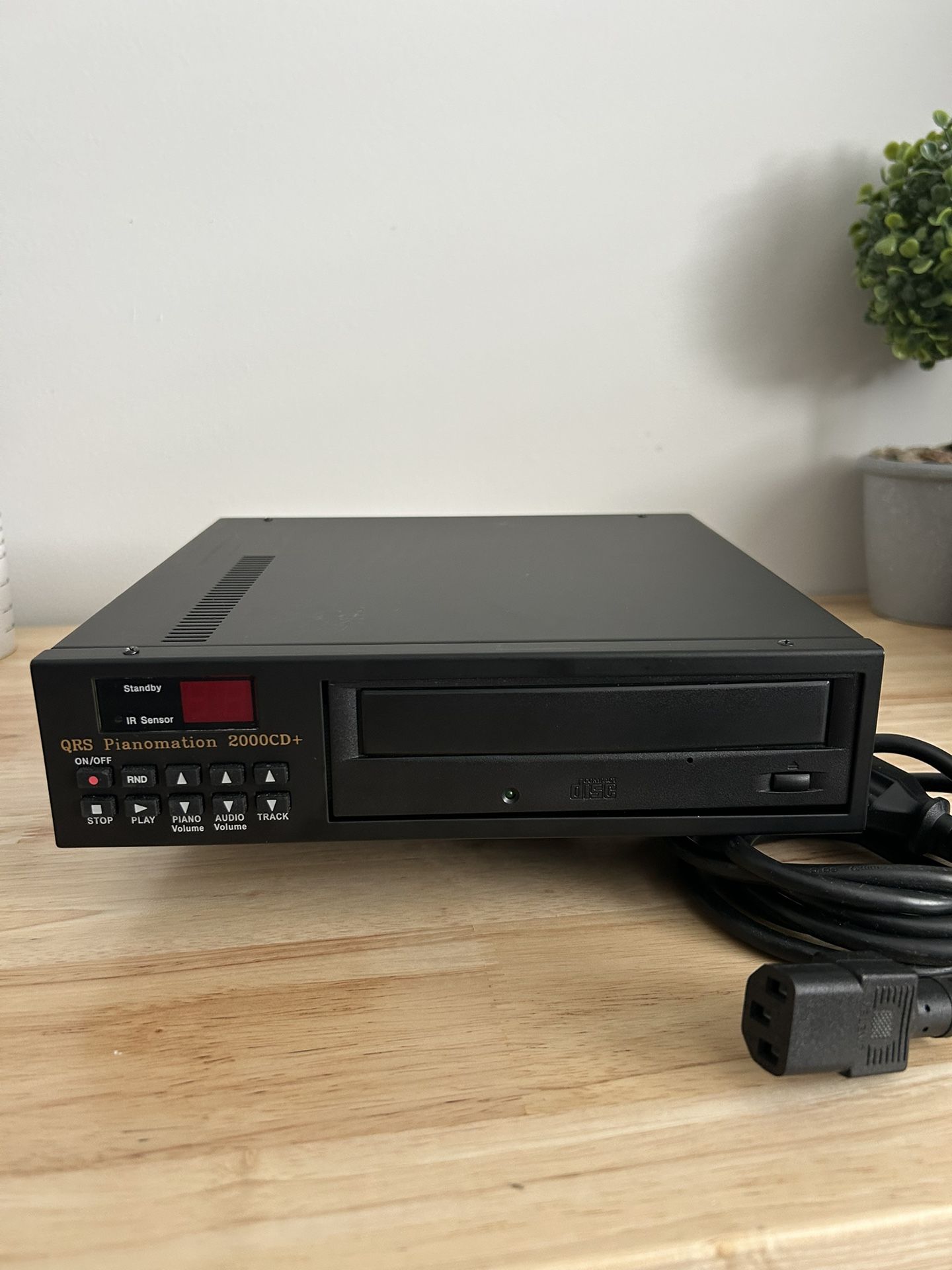 The QRS Pianomation 2000CD+ is a CD player control module for player pianos. It has stereo analog midi input (AMI) that allows users to play digital audio files from a computer. Great condition. Listing is only for the unit, power cable and the CD. Remote not included.