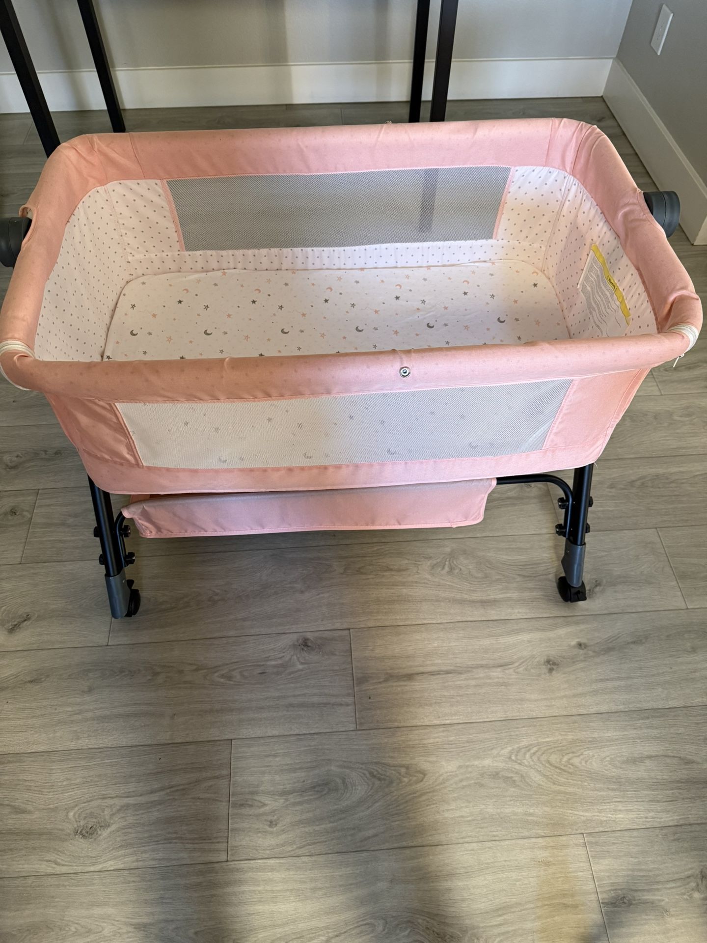 Baby Night Moses, Easy to Assemble, Portable Newborn Crim with Storage Basket, Lockable Wheels and Soft Mattress, Height Adjustable Baby Cradle