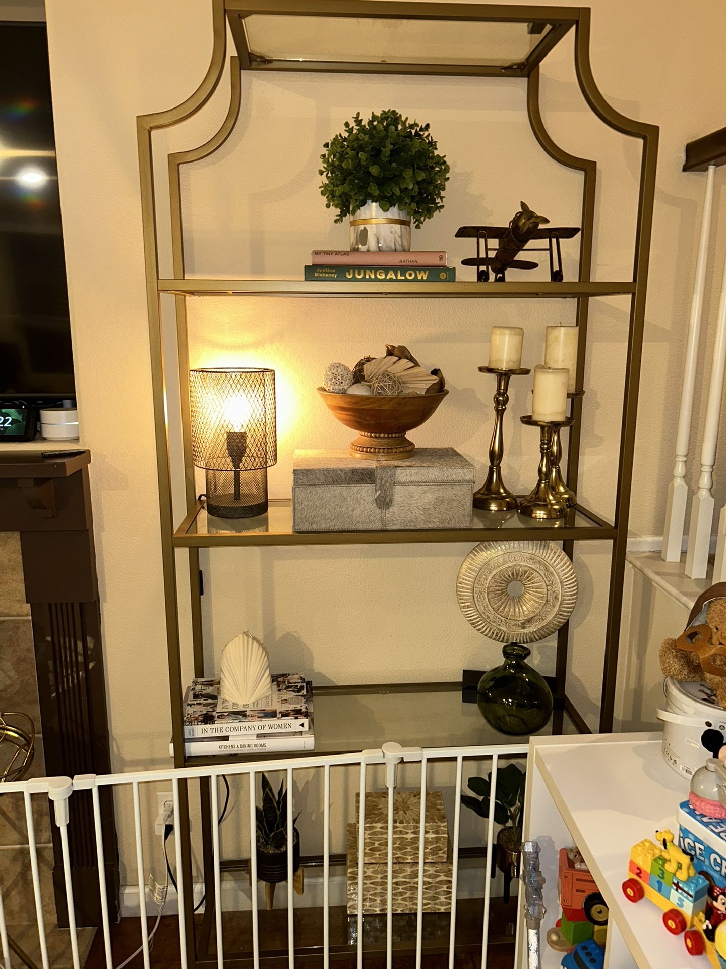 Gold and clear Metal 4-shelf Etagere Bookcase with Open Back