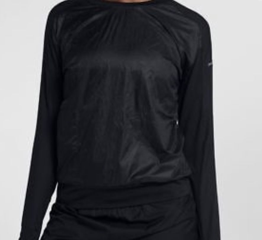 Size Small Nike women’s black ultra light jacket Running division pack able garment Used no tears or holes, has a side zipper and is 100% nylon