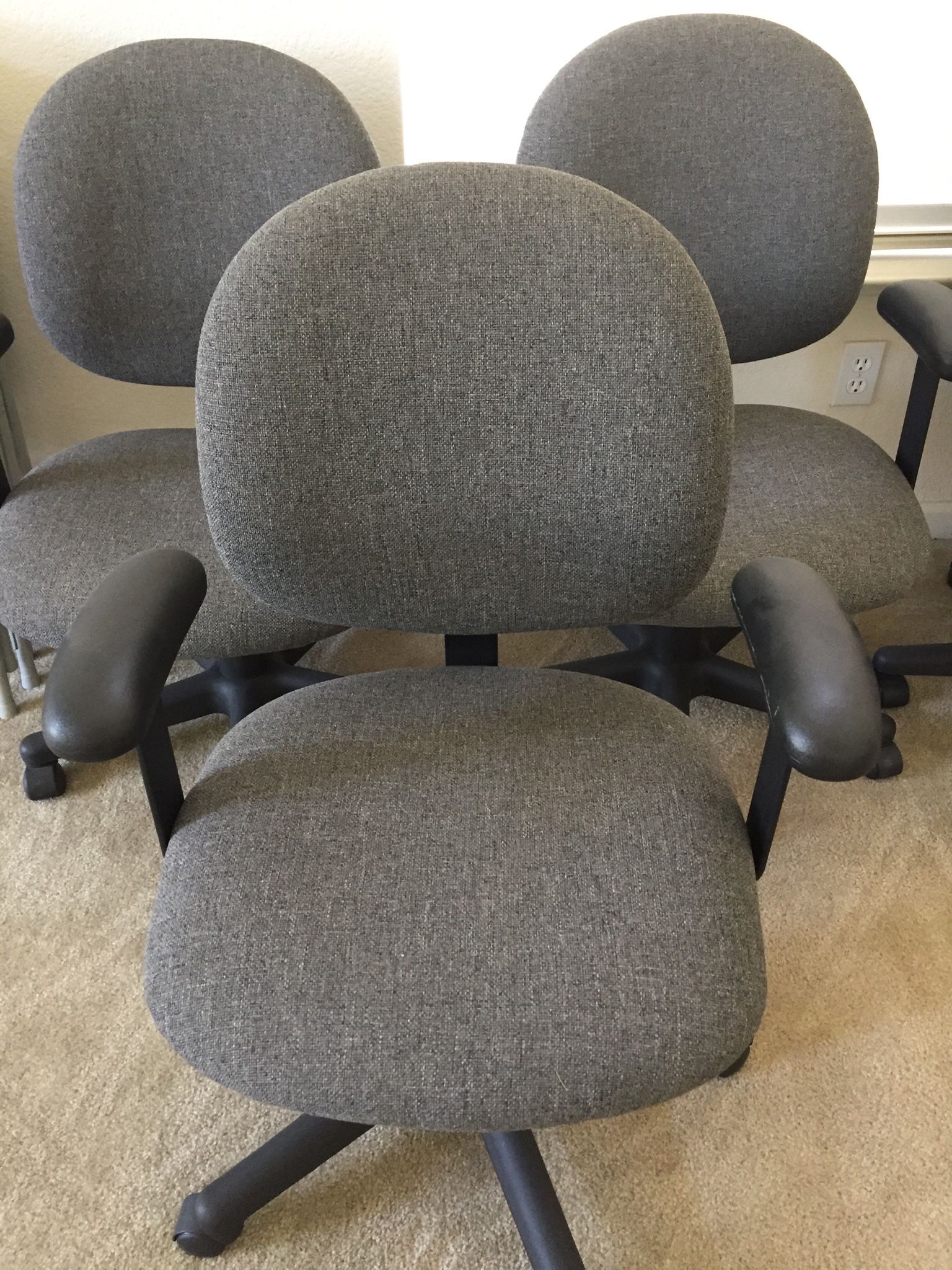 Rolling Grey office chair with side handles and adjustable height