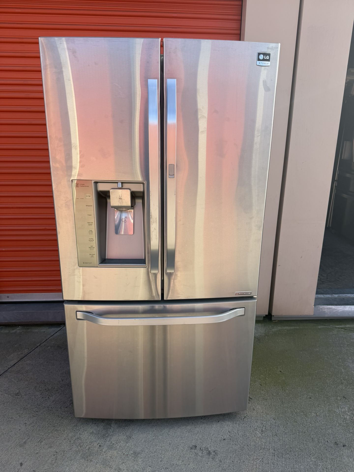 3 months warranty Delivery and installation Free haul away ( first floor) Works perfectly LG studio refrigerator Counter depth French 3 door Door in door Ice maker Water dispenser Stainless steel 36 wide 27 depth 69 height