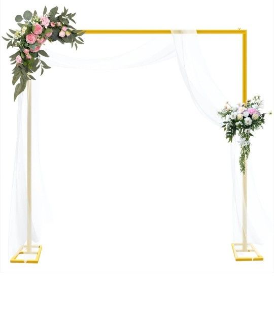 8FT Adjustable Wedding Arch Backdrop Stand, Gold Square Back Drop Adjustable Stand Metal Arch Backdrop Stand Kit Frame for Party Wedding Birthday Photobooth Decorations