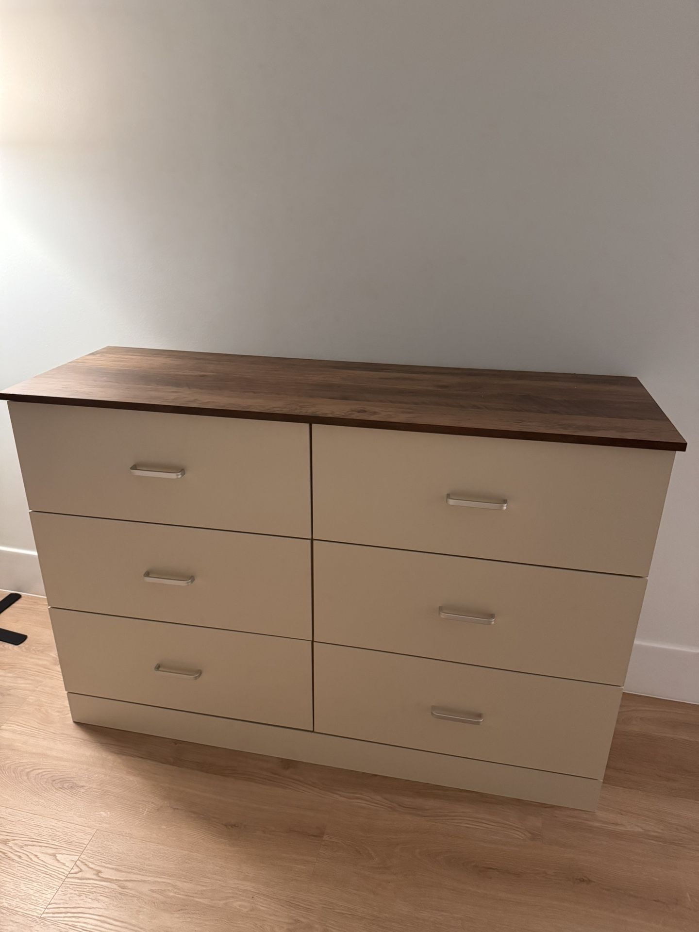 Wayfair dresser, off white color with oak top. Good as new, only used for 6 months.