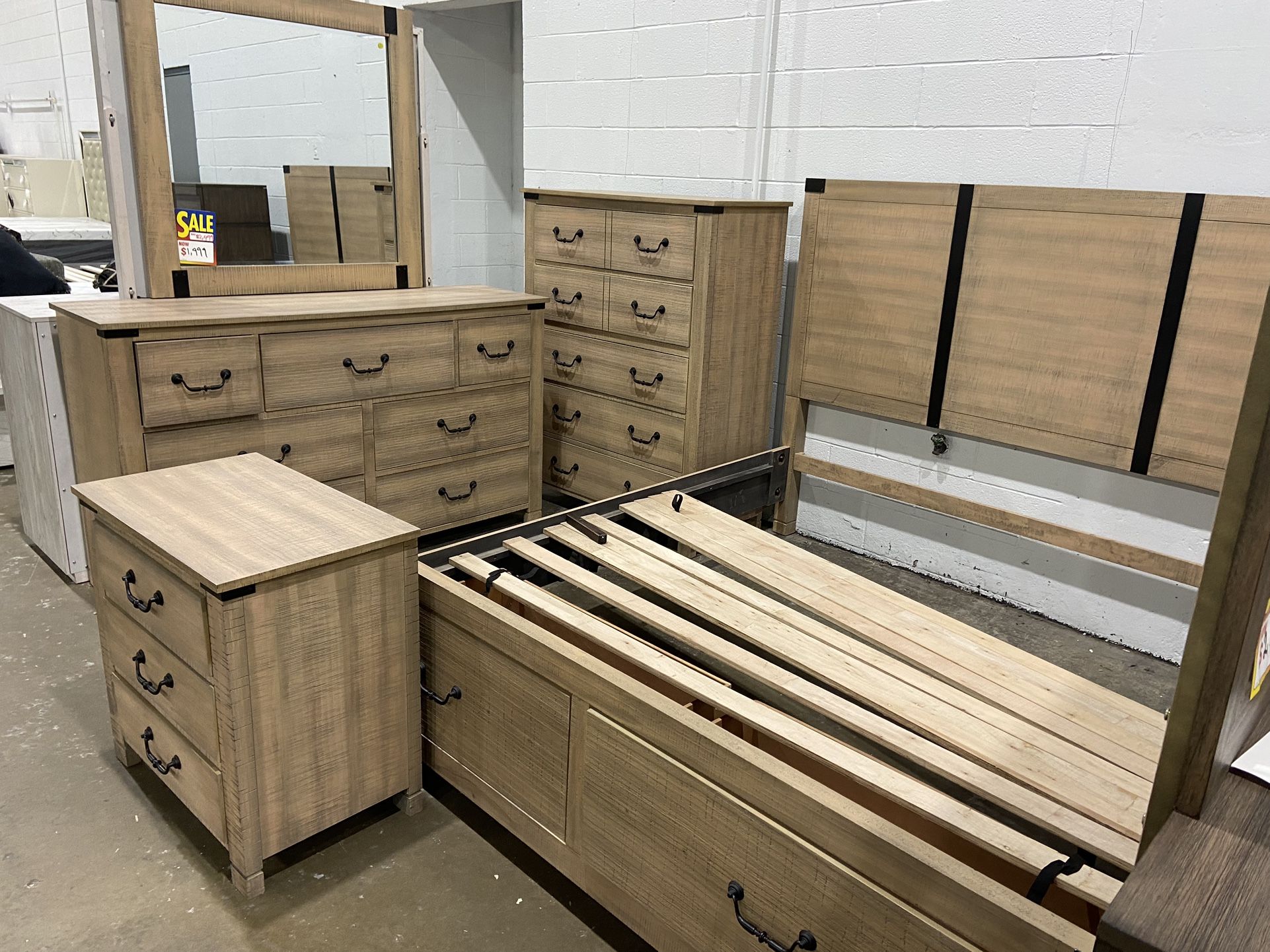 Include king bed Chest Dresser with mirror 1 nightstand Market sample Financing available ($10 down payment) Price set ($1999