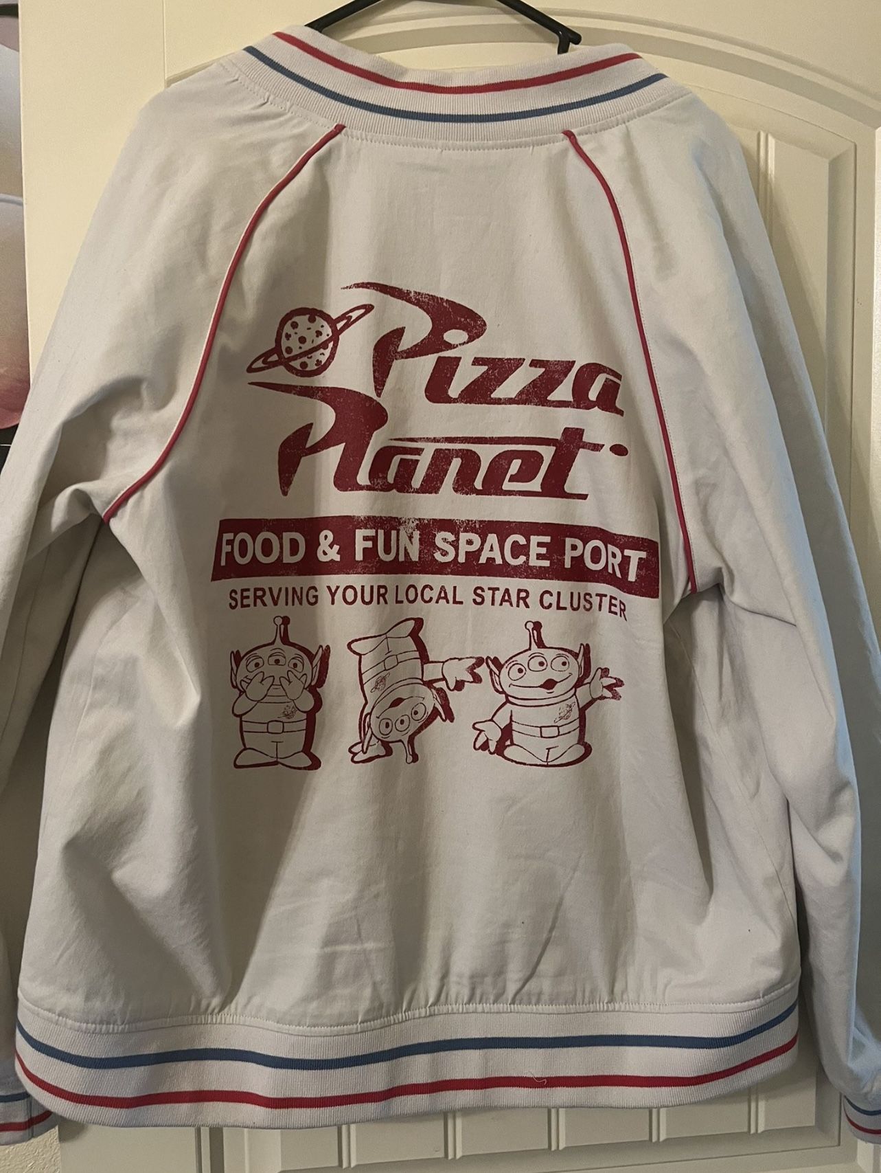 SOLD OUT/HARD TO FIND pizza planet vintage bomber jacket. Size LARGE. Gently used