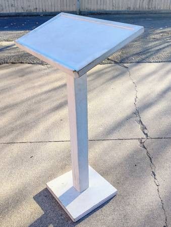 Will remove when unavailable. $195 In- Exact -Cash _ Cash Sale. $195 Firm. ~ See 8-7:45 any day.~ -Pick Up NW 30TH- Lovely farmhouse vintage white lectern that was used in a teaching facility, shows wear of the paint and wood making it a perfect farmhouse piece as is. I guestimate it to be from the 60s-70s. Great for use as a podium lectern for church service, teaching, music stand, etc, or as a decor piece displaying a family Bible or a favorite Bible, a family photo album opened out, family or favorite hmyn, or any family or favorite book. I didn't wash it just for a share of the dirt patina over time. My method of washing would be starting from the top, then each side of the post, then the base with a soaked rag and dish soap immediately drying sections as I go along with the dry rags that are needed at hand before starting the clean, and if necessary periodically add a dusting of Ajax type cleaning powder to the rag as I'm washing. The front bottom middle has a split that is only cosmetic and doesn't affect the stability, one corner of the base has a little slither of wood missing that is only cosmetic shown from 3 different angles that doesn't affect structure. I guestimate this to weigh about 25-30 pounds. It's 48" high at the back, 43" high at the front, 28" wide, 18" front to back at the top. ~ NW OKC. If price isn't a fit for you please do not inquire|Meet!* * Please no holds!~