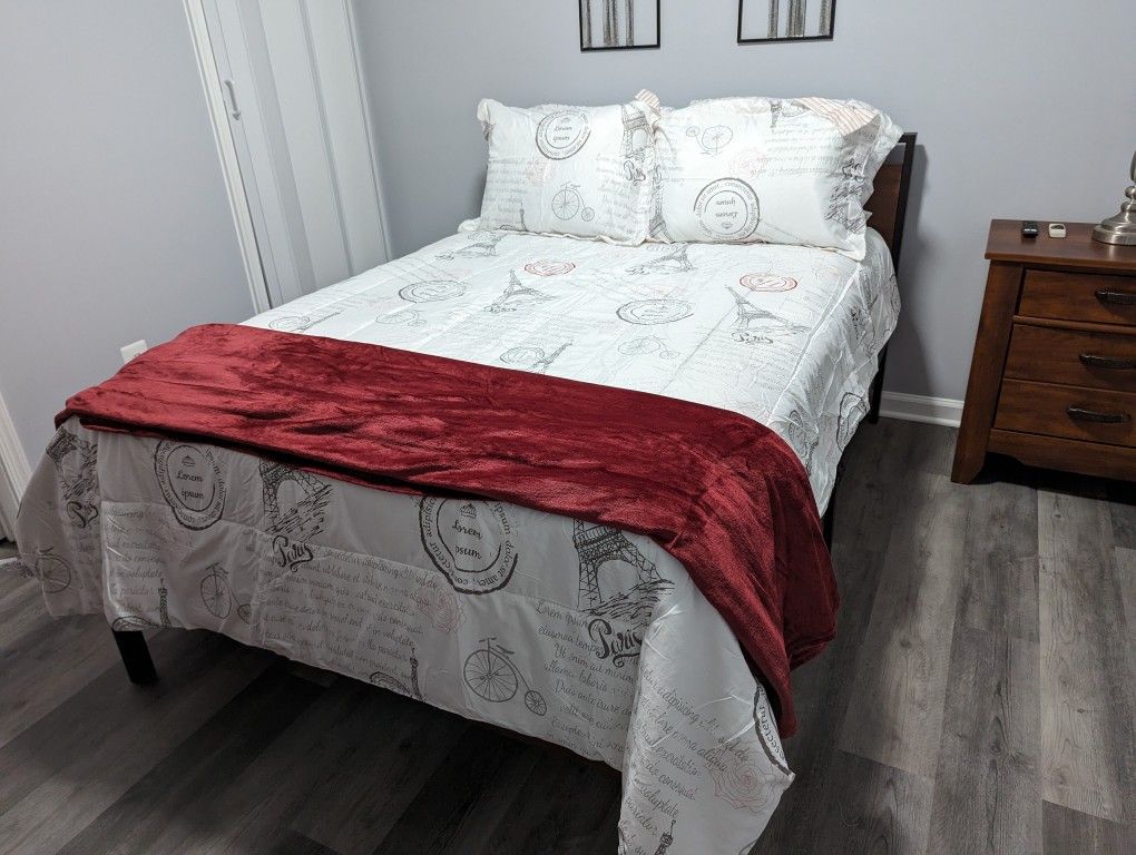 Full Size Bed W/ Box & Mattress, Plus Mattress Covers