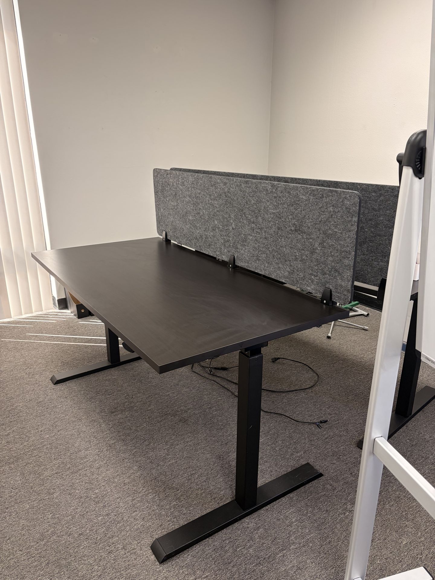 Office desk come with partition. 60 x 30 inch. Like new. It’s adjustable without electric. 2 desks are available Pick up at orange