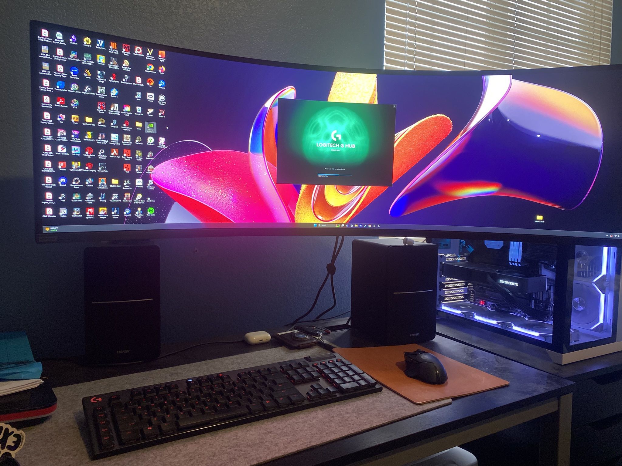 Specs: • 49-inch QLED Ultra-Wide Screen • 5120 x 1440 resolution (Dual QHD) • 240Hz refresh rate • 1ms response time • Supports NVIDIA G-Sync and FreeSync Notes: I’ve owned this monitor since July 13, 2023, and it has been lightly used. There is a slight scratch on the screen, located to the right side (visible in the attached photo). The scratch is minor and does not affect performance or display quality. The monitor does not include the original box, but it comes with the stand and all original. You will need to meet me at my apartment lobby and I recommend having two people to help move it. Price: I’m open to reasonable offers.
