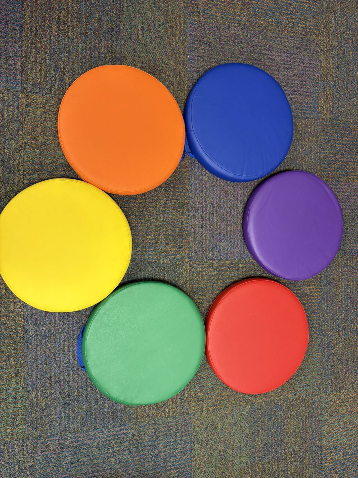 Teacher Classroom Set of 15 inch Round Classroom Floor Cushions with Handles for Reading Factory Direct Partners SoftScape 15 inch Round Classroom Floor Cushions with Handles; Flexible Seating for Daycare, Preschool, Playroom; 2 inch Thick Deluxe Foam (6-Piece) - Assorted Used but in awesome condition . Selling for less than half the price of Amazon. Pickup in Chandler 500 N. Metro Blvd $25