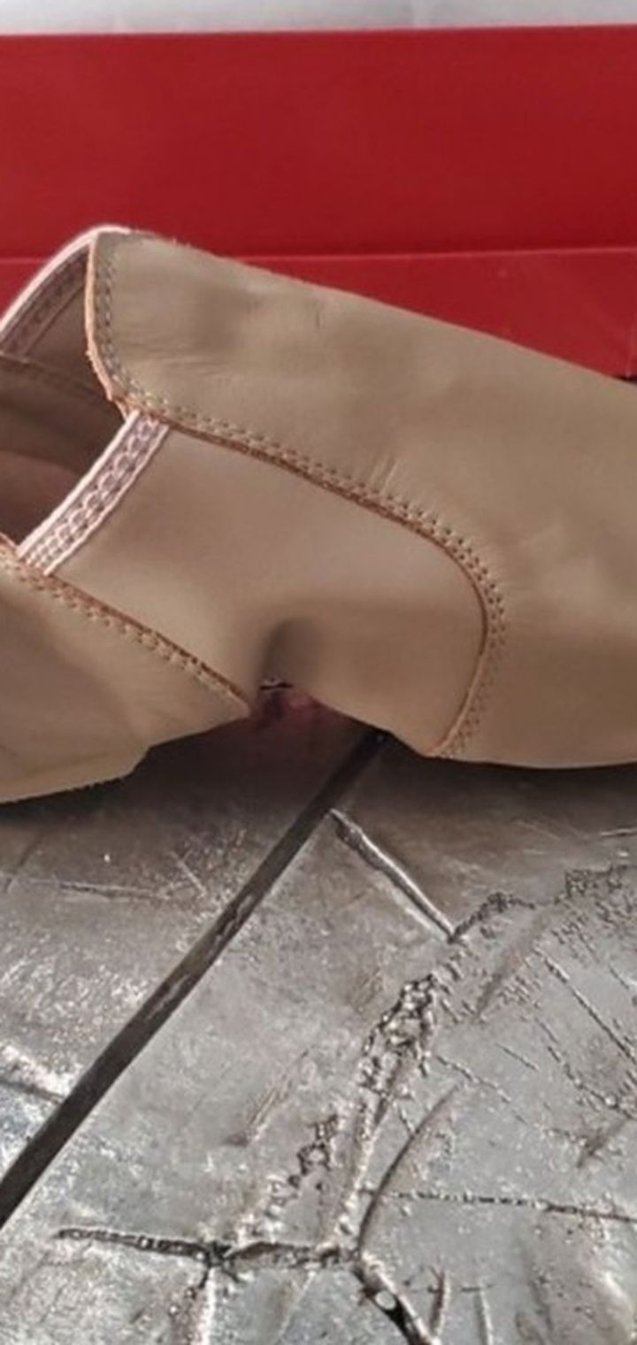 Capezio E series slip on jazz shoe in black and tan. Sizes: 5 through 14 and half sizes.