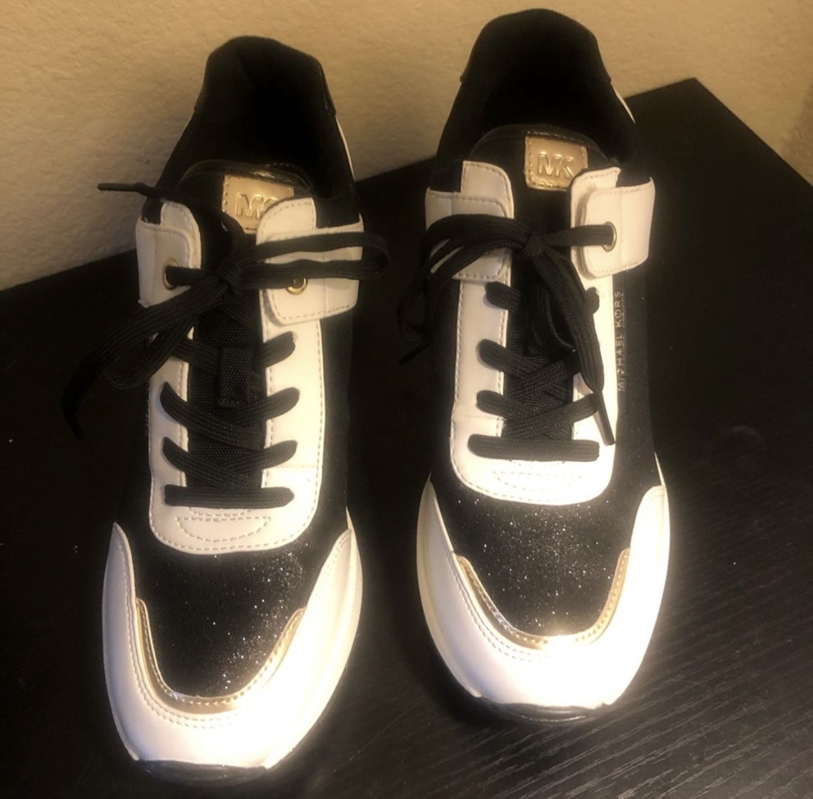 New without tags these stylish Michael Kors Liv trainers. They were designed to be as comfortable as they are modern. Made from canvas with patent trim and logo-print accent. DETAILS • 54% Flax/45% Cotton • Lining: 100% Textile • Sole: Rubber • Round Toe • Lace-Up Fastening • Heel Height: 2.5" • Heel Type: Wrapped Size 8