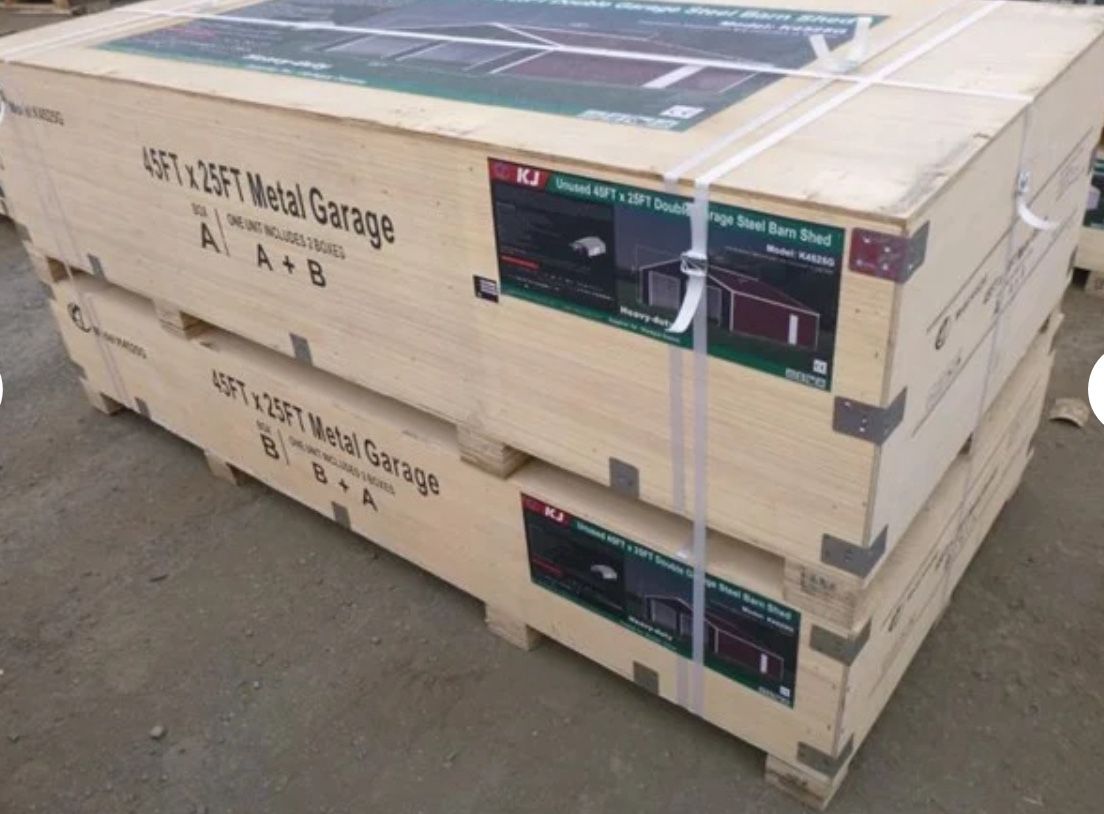 45x25 Metal Garage. New in crate. Comes with instructions and can be build in a day by a few people. Have forklift to help load. —- I do not install them—- $6500. Cash or credit card accepted ( credit card has a 3.5% fee)