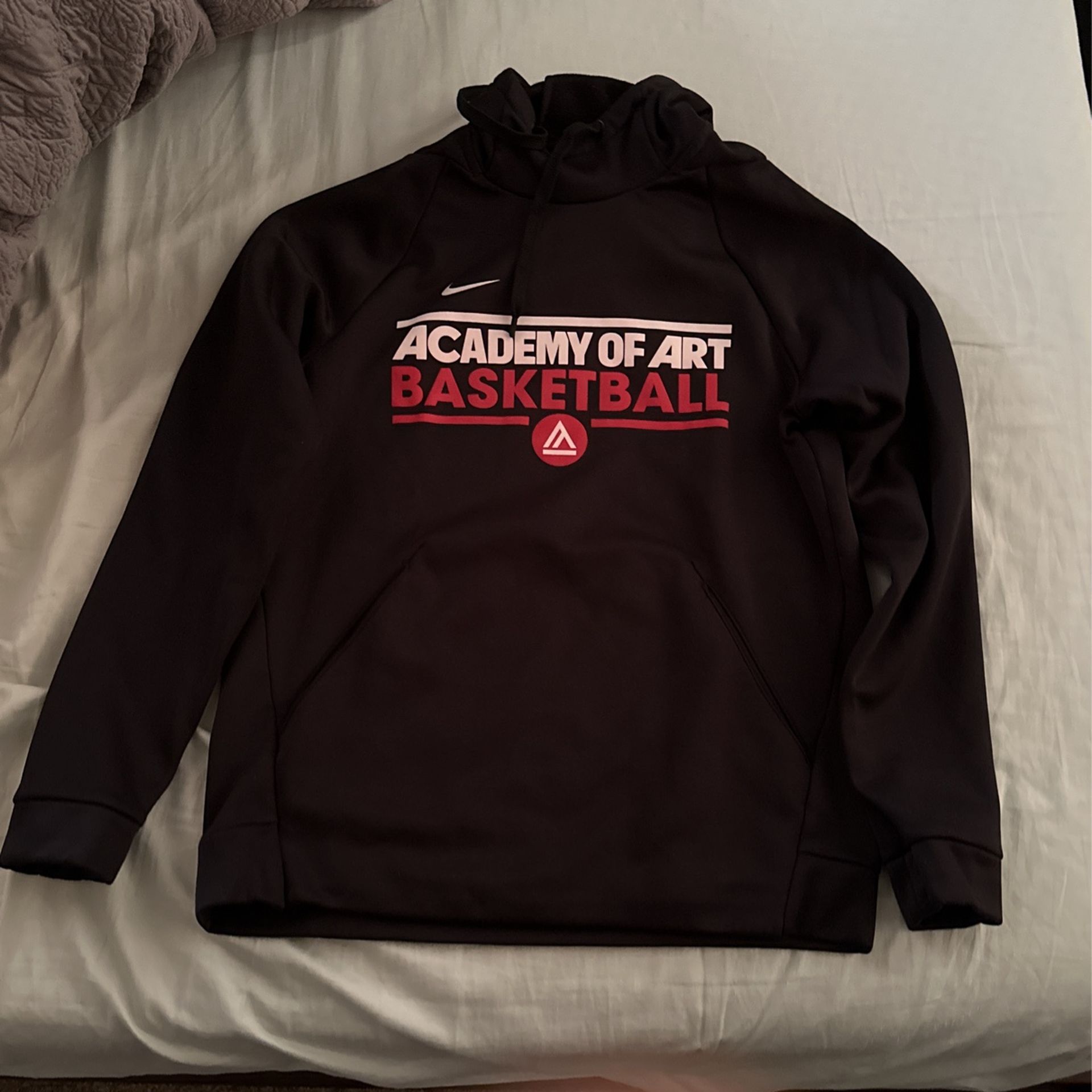 Just a simple Academy of arts Nike basketball hoodie just trying to get rid of clothes. I’m going to sell more. No rips or nothing basically brand new. It’s a medium that fits like a small.