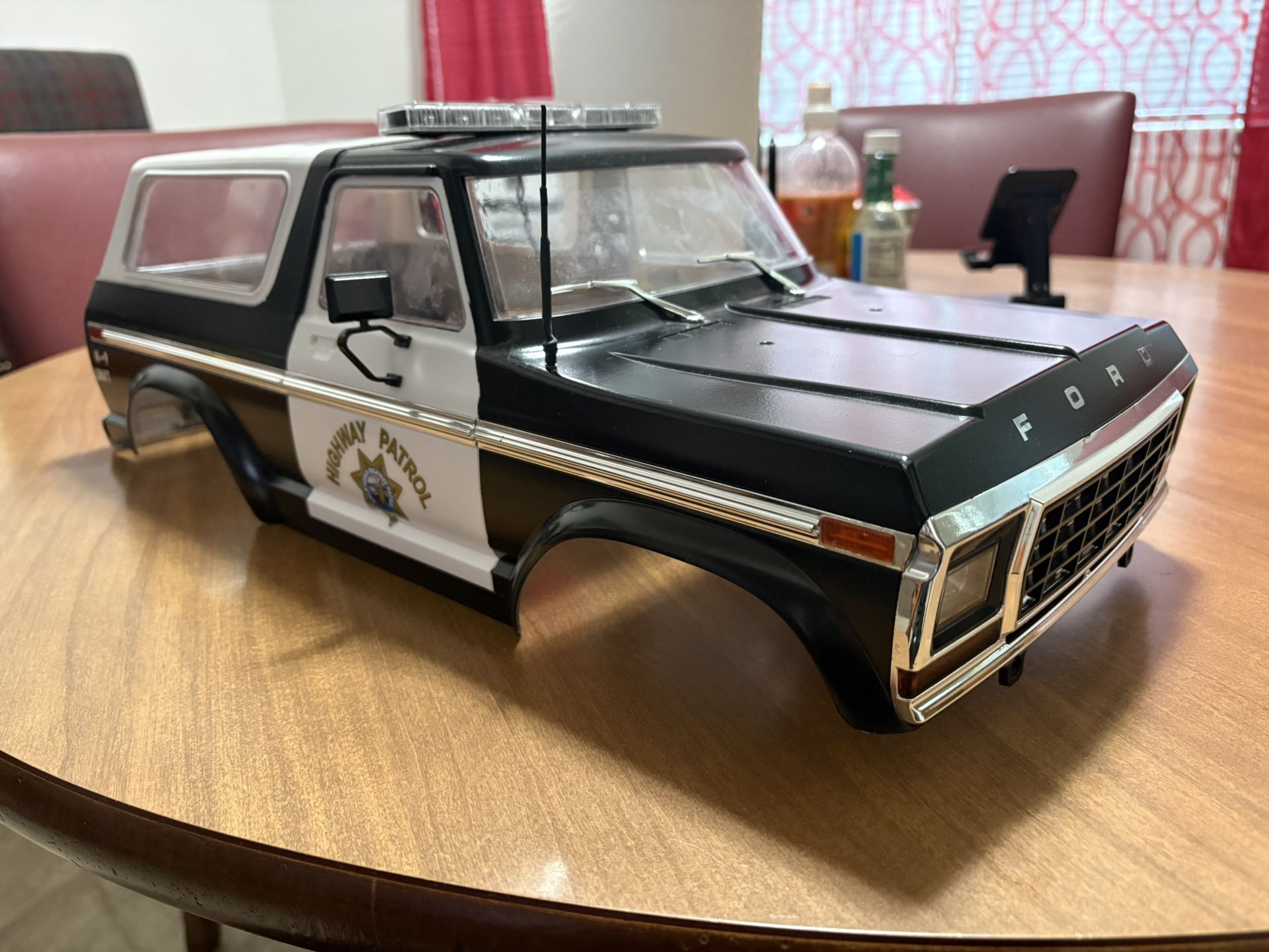 For sale ford bronco hard body with highway patrol paint job and bonus mytrick rc police light bar Was gonna be used for a project but it ende led up not happening 313mm/12.3inch wheelbase Missing passenger door handle didn’t come in the kit just the driver side Never been used at all