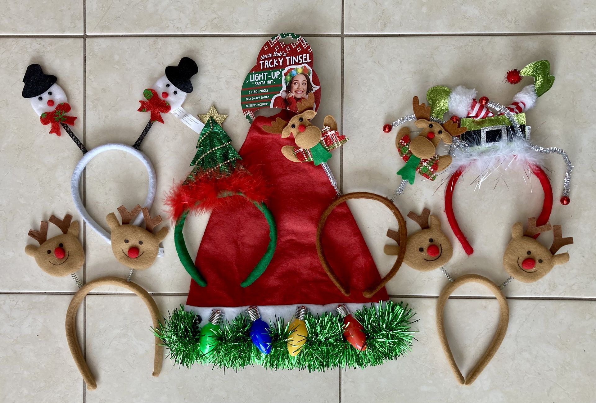 All for $10. Christmas headbands include 3 reindeer, 1 snowman, 1 tree, 1 candy cane headbands and 1 light up Santa hat.