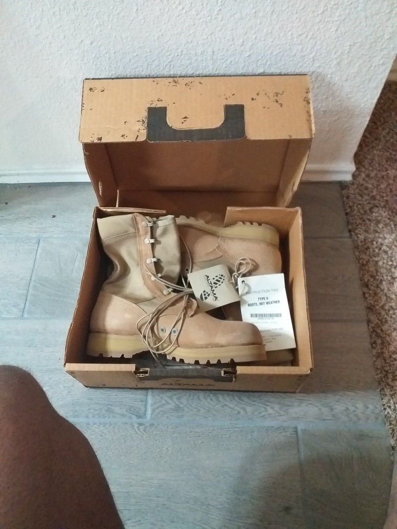 New in the box ALTAMA Hot Weather boots Type II Size 10.0W Asking $55 OBO If it is listed it is available.