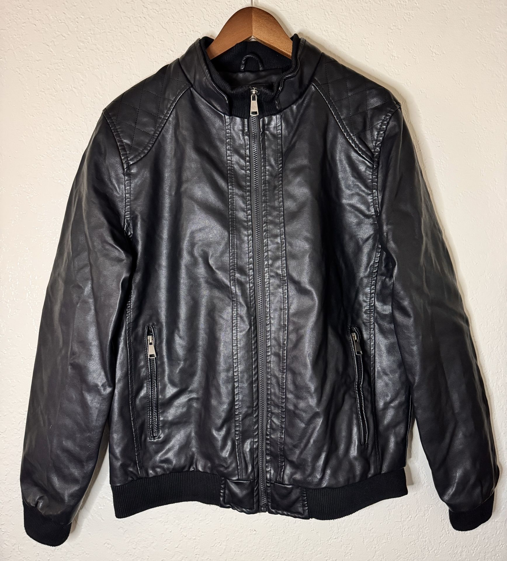 American Breed Size L Medium Men's Faux Leather / Fur Motor Biker Jacket Black