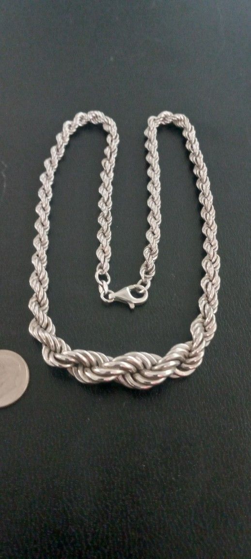 Sterling Silver 925 Graduated Twisted Rope Chain Necklace 18 In Signed KA 925 21 Grams