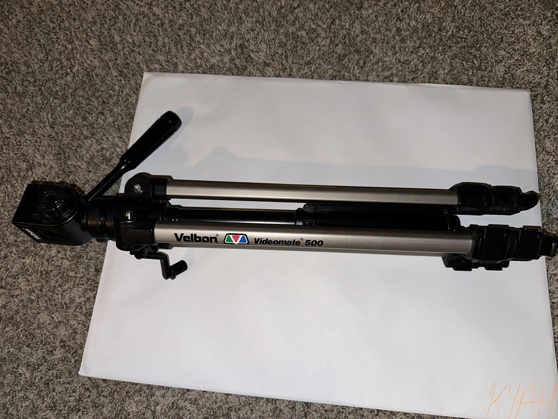Camera / Phone Tripod Comes with 2 accessories One of the safety clips is cracked..shown in picture But it still works very good (it may pop out, just push back in) Goes up to about 134cm/ 4.4ft