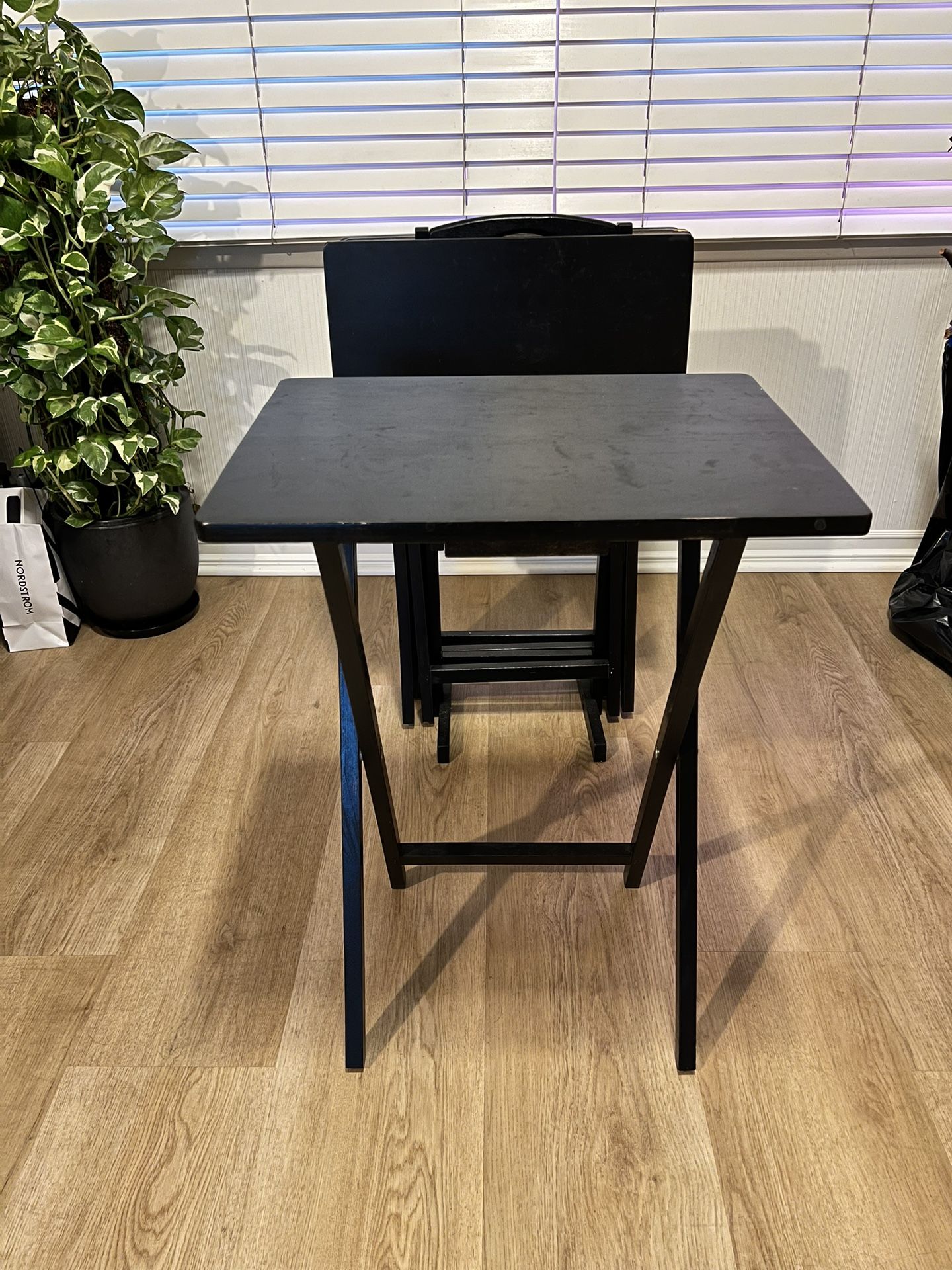4 Folding Tray Tables w/ Storage Rack $25