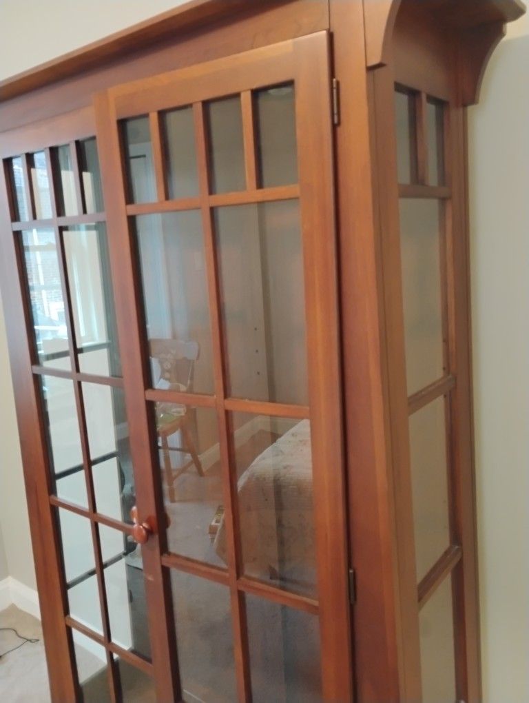 This is an opportunity to own a handsome lighted cabinet from one of America's premier furniture makers, Ethan Allen, Similar cabinets now sell for 3 or 4 times this price. Rich Mission Oak and Craftsman design add elegance and warmth to any room, while showcasing and protecting books or pottery or your other collectibles. There are 3 glass shelves , It's 70" tall x 37 1/2" wide by 13 1/2"deep. Big enough to make an mpression without overwhelming a room. A high quality piece you'll be proud to own for years to come, I'm downsizing (but have another Ethan Allen I'm keeping!). PayPal or cash