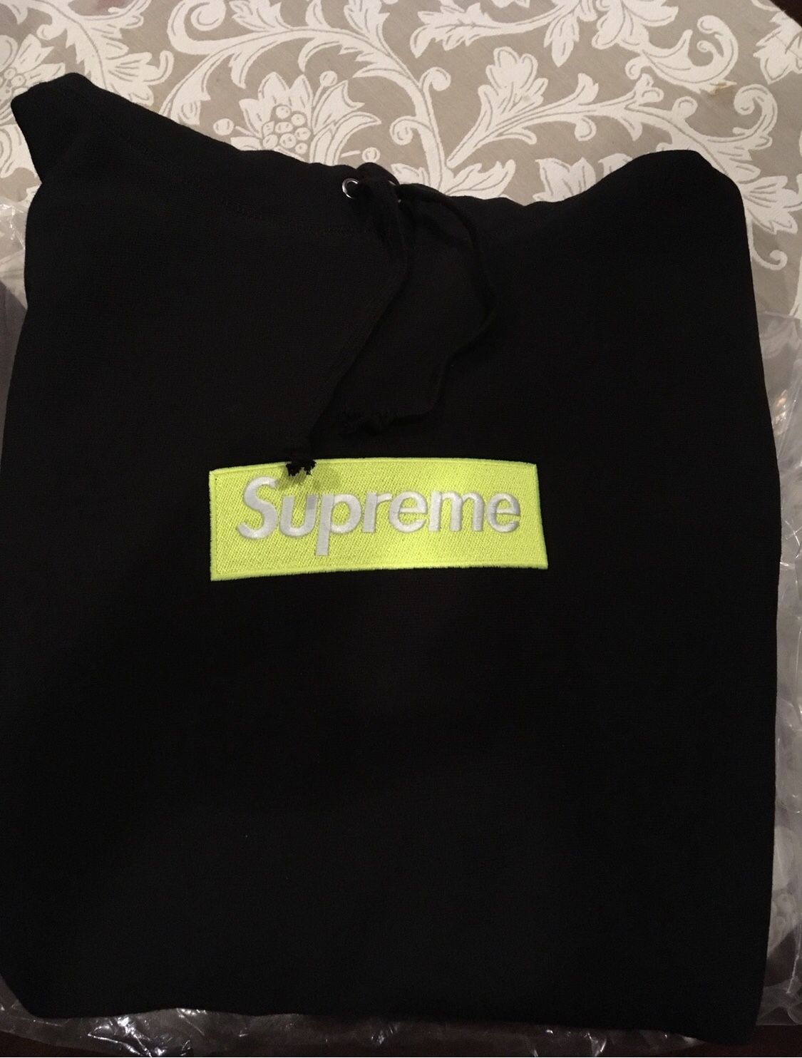 Supreme lime/Black box logo hoodie, tried on once basically dead stock, have supreme shopping bag for it and receipt confirmation