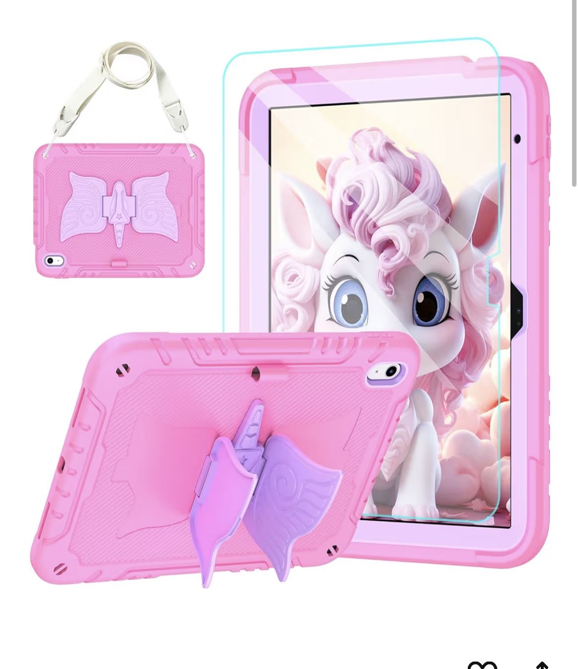 for iPad (A16) 11th Generation 11 Inch 2025/iPad 10th Generation Case 10.9 Inch 2022 with Tempered Glass Screen Protector,Unicorn Stand,Shoulder Strap,for iPad 10 Case Kids Girls (Pink) Compatibility : Exclusively designed Shockproof Case for iPad (A16) 11th Generation 11 Inch (Model Number: A3354 / A3355 / A3356) 2025,iPad 10th Generation 10.9 inch (Model includes: A2696 / A2757 / A2777) 2022 Released. NOT fits other Generations iPad (With Screen Protector) Exclusively Designed : This case for iPad 11th/10th generation kids Premium Soft silicone rubber and hybrid hard PC + front hard PC bumper 2 in 1 design easier to install and remove than three layer with stands daily drop, bump and shock with four corner cushioning for protection, suitable for the Kids girls and adults (This ipad 11 inch/10.9 inch case) Comes with 9H Tempered Glass Screen Protector : Support Apple Pencil,Easy Installation,Made of 9H hardness tempered glass, the IPAD 11/10.9 screen protector can effectively withstand unwanted scuffs and scratches, reducing damage to the screen for iPad 11th/10th Generation tablet.If your protective film is accidentally damaged in transit, CUSTOMER SERVICE TEAM will provide satisfaction Built in Pencil Holder & Unicorn Stand : iPad 11th/10th Generation Case built-in Pencil holder allows you to store and carry your Apple pencil easily.The vivid unicorn stand design frees your hands and makes your iPad unique. Adjust the best angle to watch the video, working and typing (APPLE Pencil is NOT included) Removable Shoulder Strap : Attaching any two corner on back cover with our strap, it will allow you enjoy your iPad behind car head rest for easy viewing or between two seats for shared viewing. It is also convenient for kids to carry around when walking & travelling