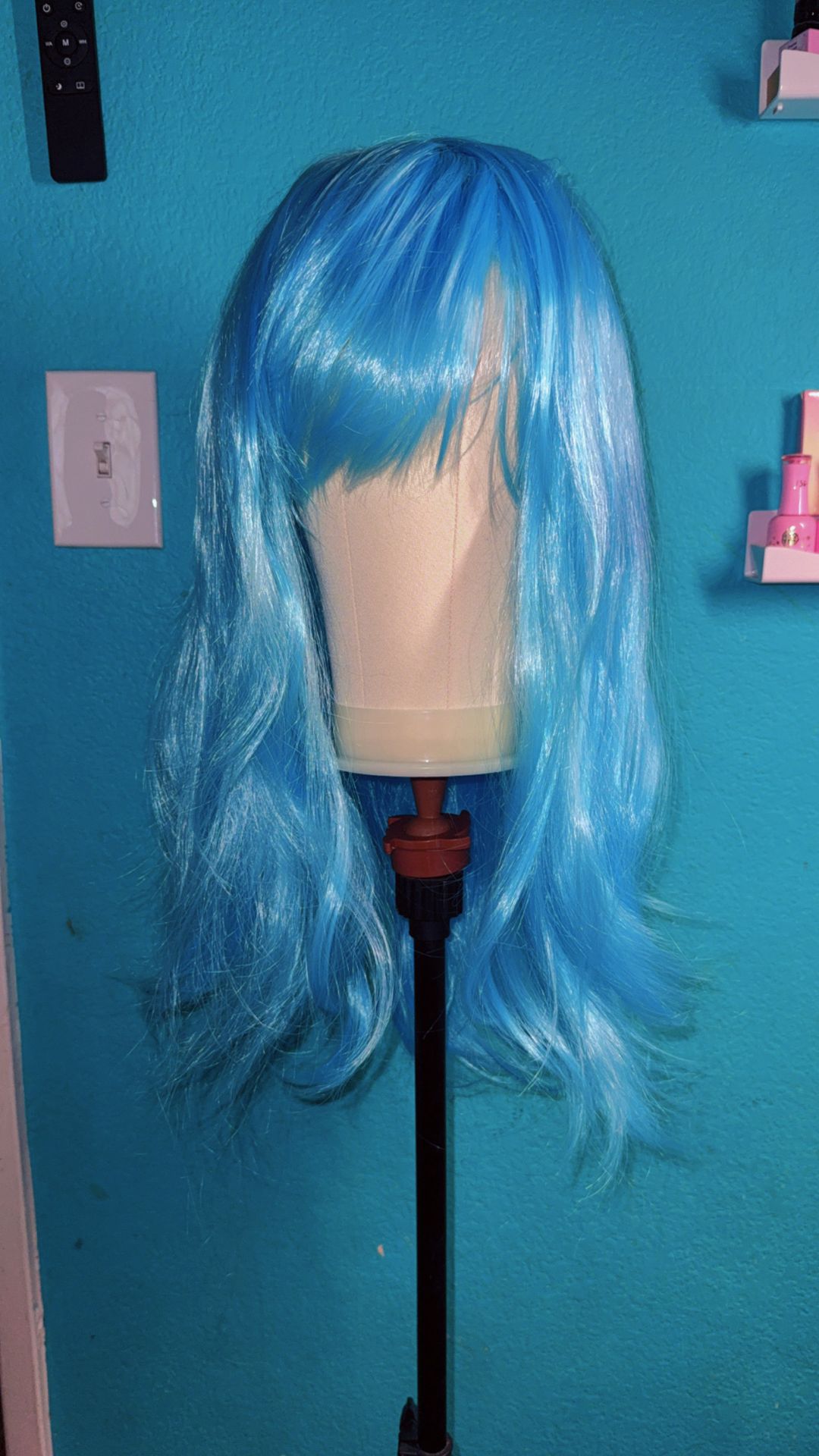 Heat Resistant synthetic blue Wig