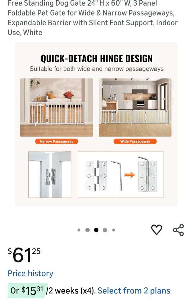 Free Standing Dog Gate 24" H x 60" W, 3 Panel Foldable Pet Gate for Wide & Narrow Passageways, Expandable Barrier with Silent Foot Support, Indoor Use