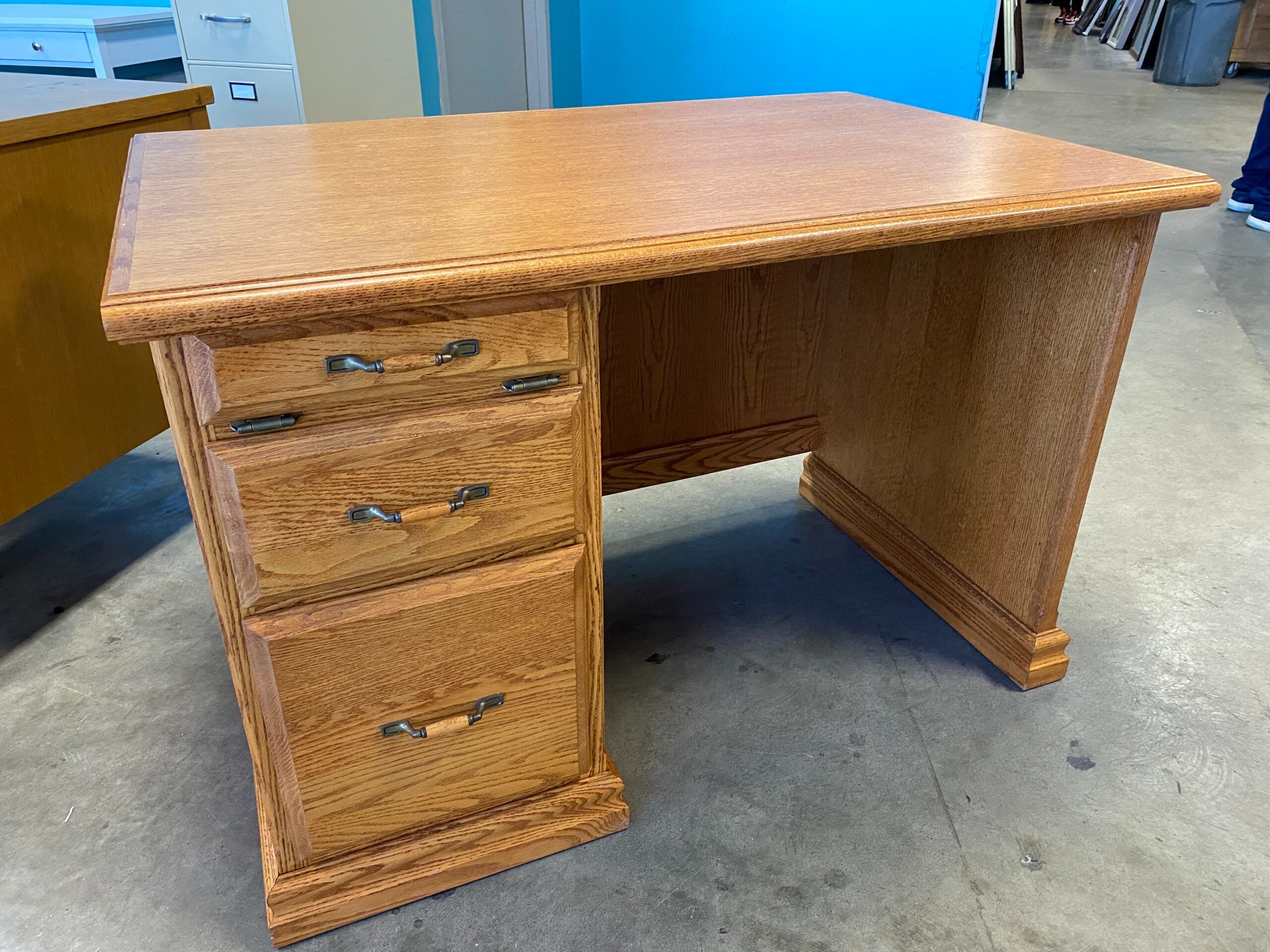 MOUNTAIN FURNITURE Vintage Oak Office Desk with Side Trays