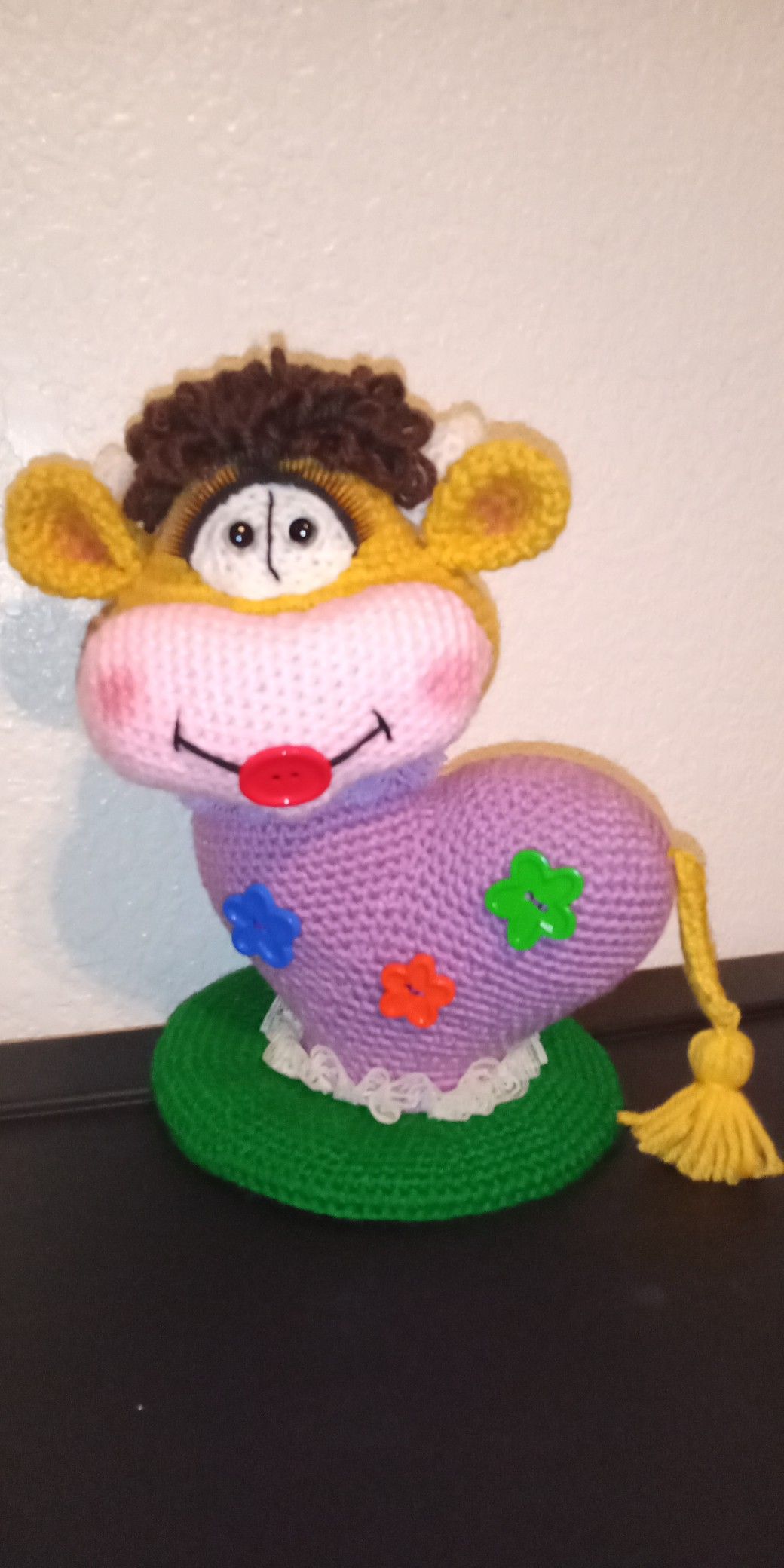 Home decor or toy. Created and croched by Elena. One of kind. Using Amigurumi Technique. Soft Yarn. Size 9"x9". Local pickup or shipping. Individual orders are accepting. Smoke and Pet free. Thank you for looking! Please, check my other offers.