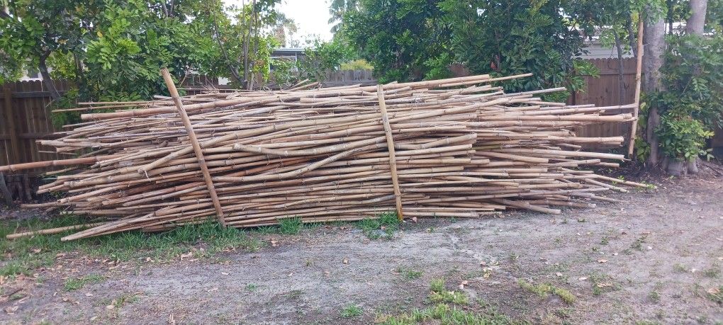 Truckloads of fresh cut bamboo. Recently harvested and cleaned. Select the bamboo poles that you want to use from what I have here. I can cut down some more if you need poles that are longer than 25 feet. 10 foot long poles cost $5 each. Quantity discounts can be negotiated. Will consider reasonable offers or trades. Come buy some of this before I use it all building a Tiki hut shed. If you need a lot, I am sure I can cut down some more.