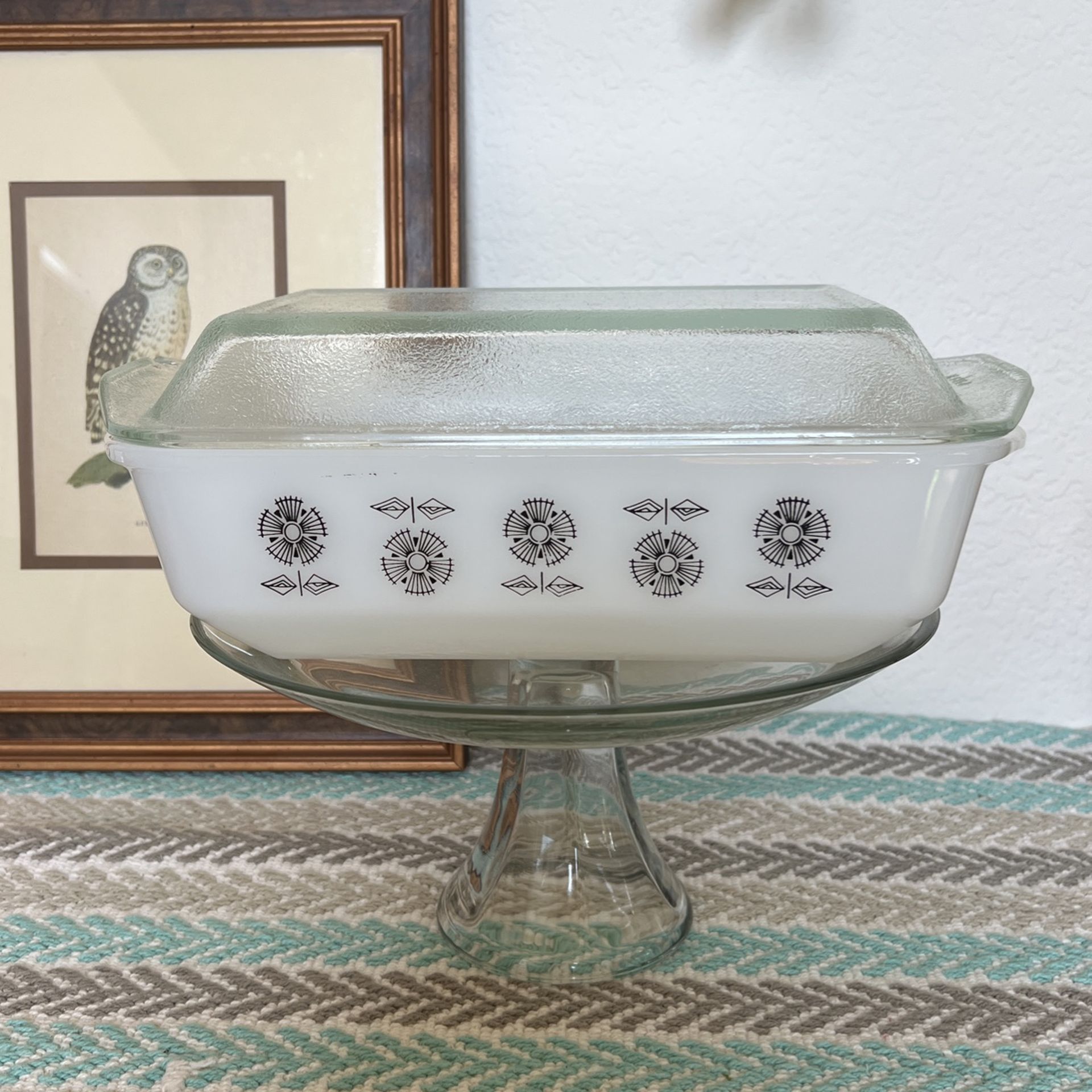 No chip or cracks on dish, one smooth chip on lid handle and 3 small chips on inner edge of the lid. If you know about Agee Pyrex, these chips are very normal. Good vintage condition. Pick up 91730.