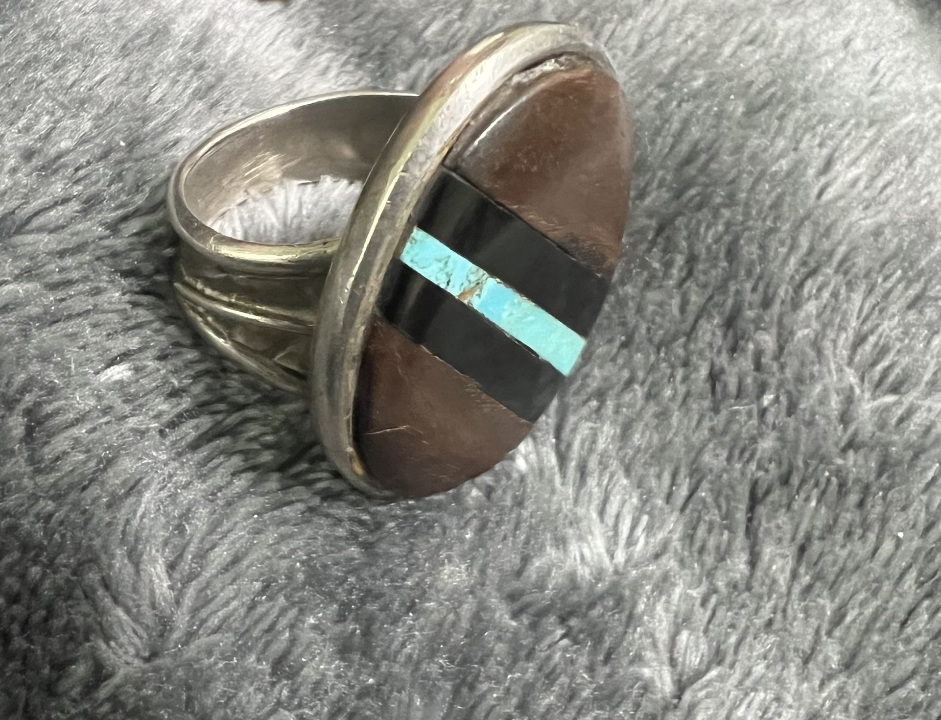 South Western Turquoise Black Onyx Sterling Silver Size 11 Ring