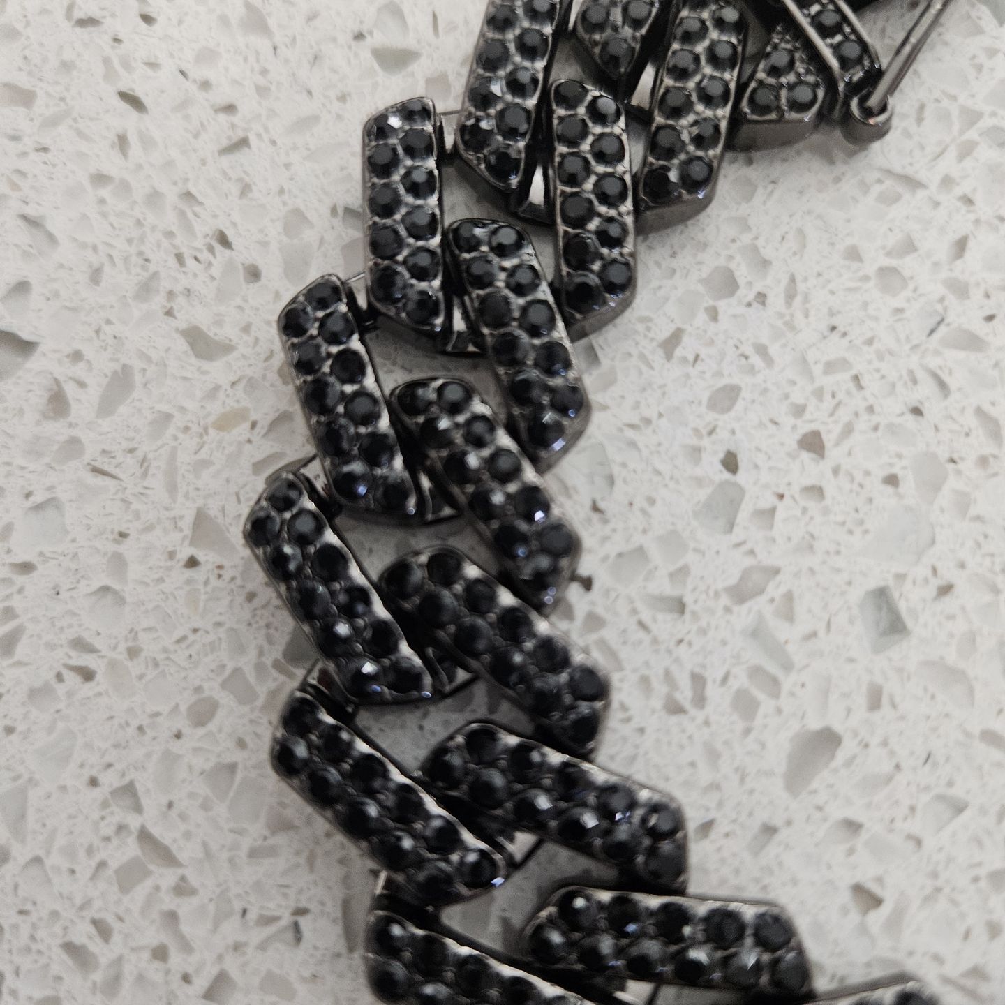 I have 20 inch 12mm black Cuban necklace and matching 7 inch Cuban bracelet CZ. $40 for necklace or $20 for braclet separate. Or as a set for $45... Brand is AJ high quality made in USA brand new. Final.price need to sell
