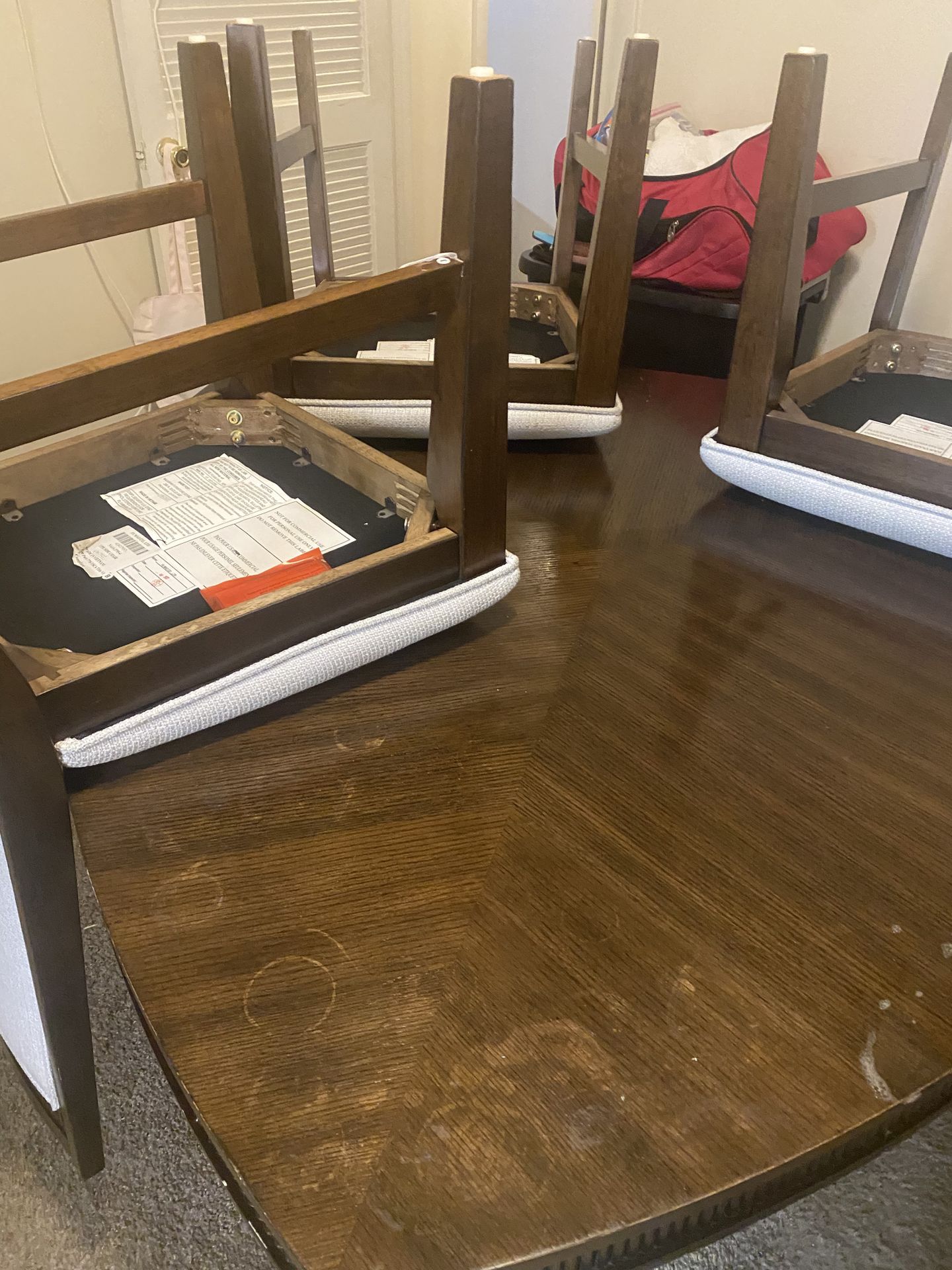 Leaf style table with 4 chairs and. Bench. Bench had stains. PICK UP ONLY