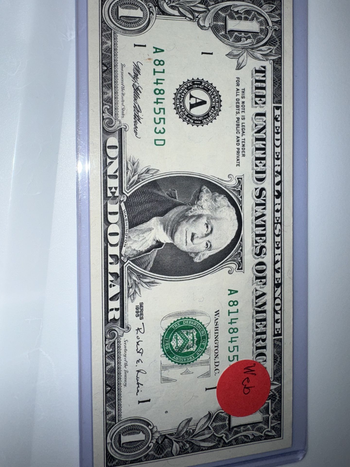 Uncirculated 1995 $1 Web Note This bill is called a “Web Note” due to using a different printing technique Highly Collectible