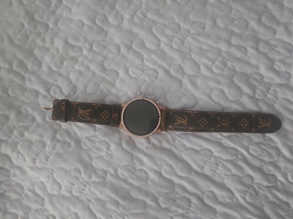 Bluetooth enabled text talk play games and more does come with step counter as well. Case and band included No stracthes this was well taken care of watch is originally rose gold color