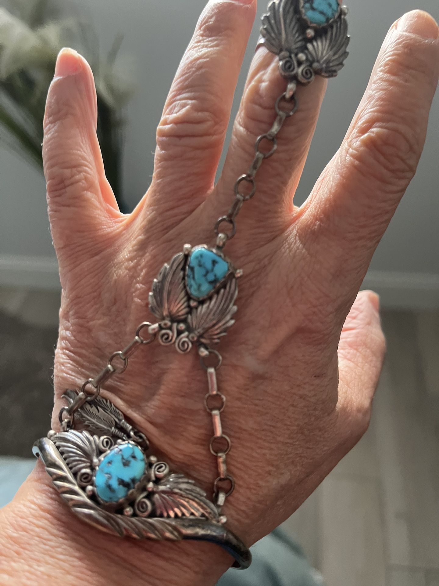 Turquoise jade Bracelet And Ring silver